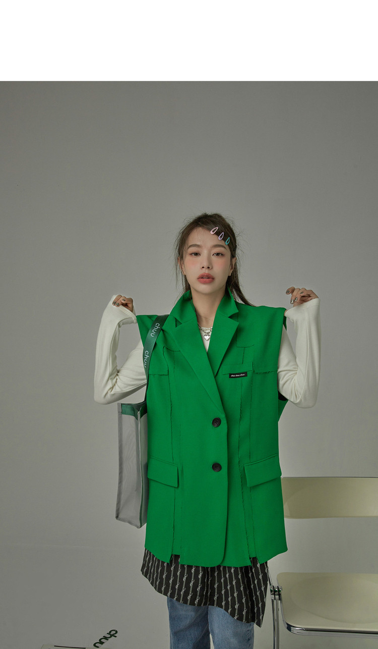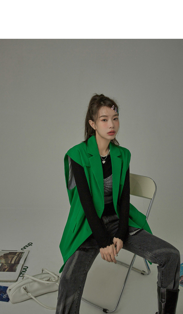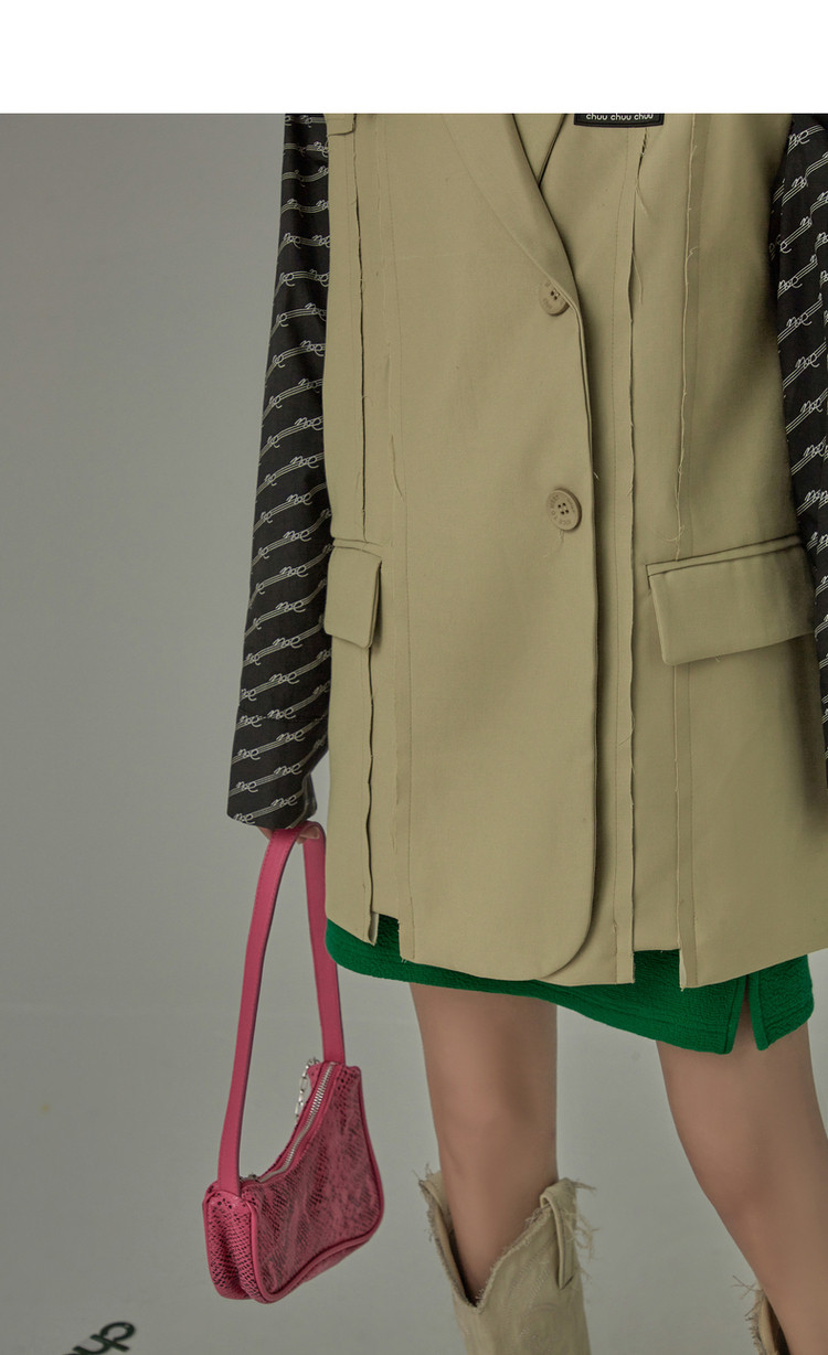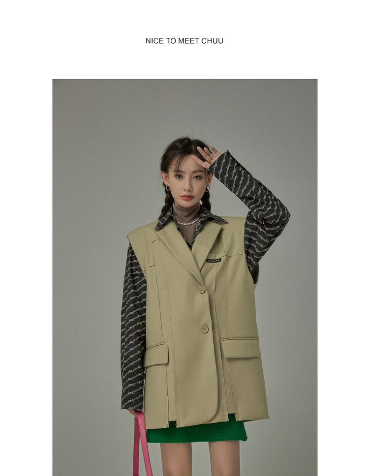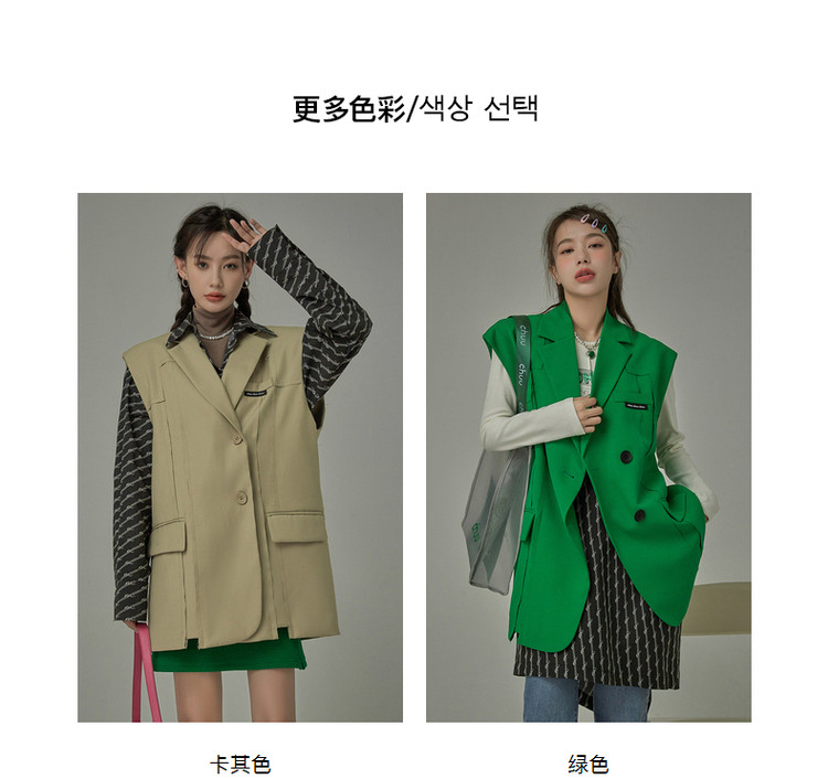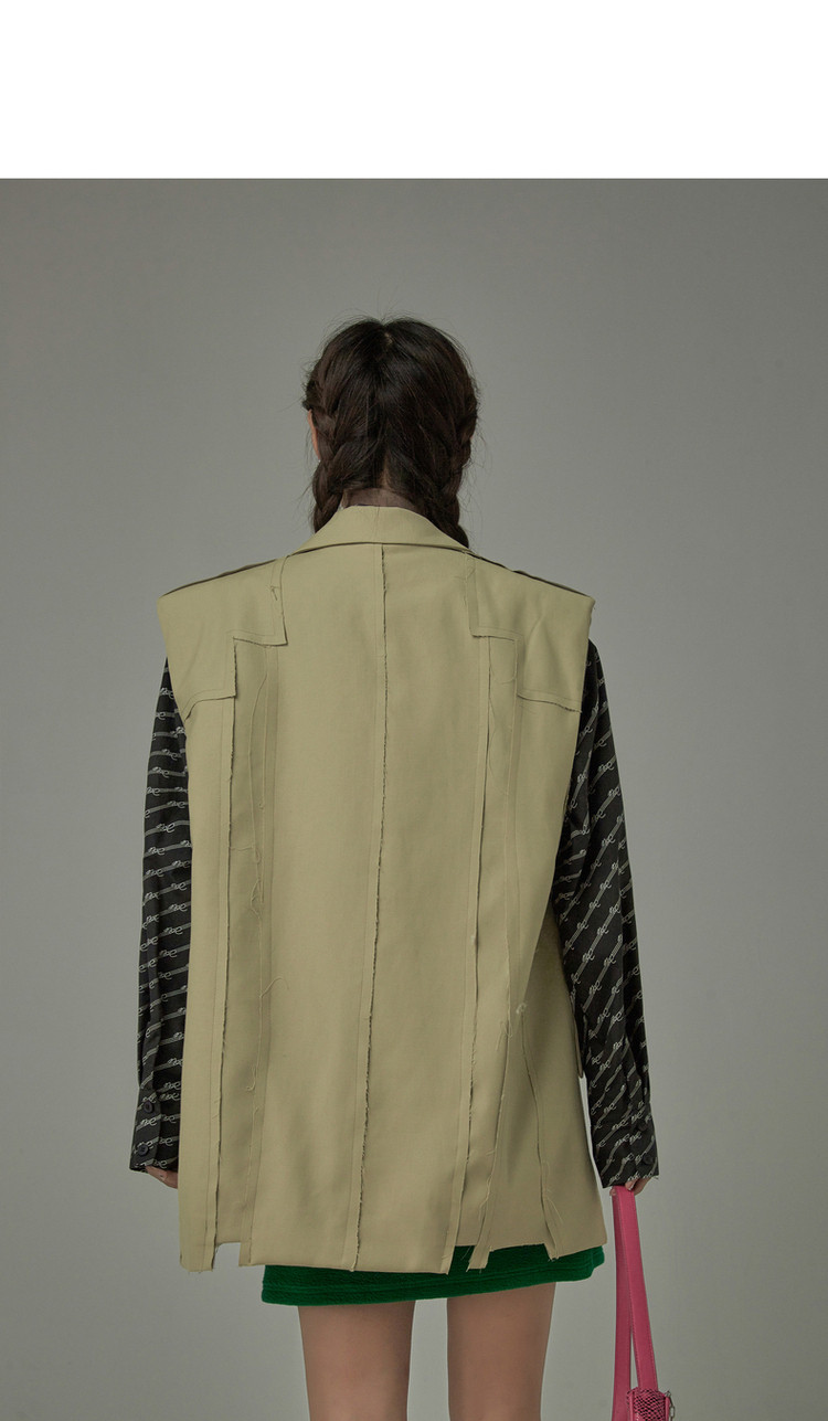 西装马甲女春秋拼接贴标工装风垂感外穿上衣 796115