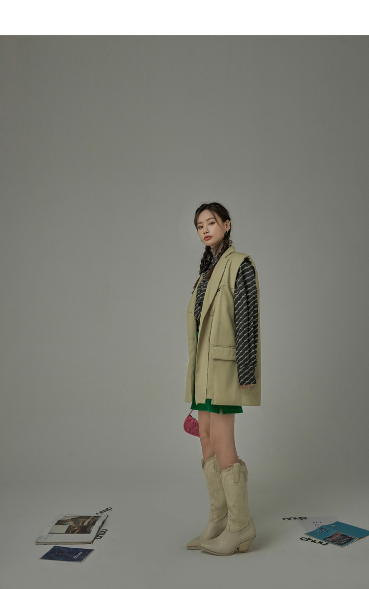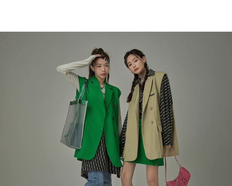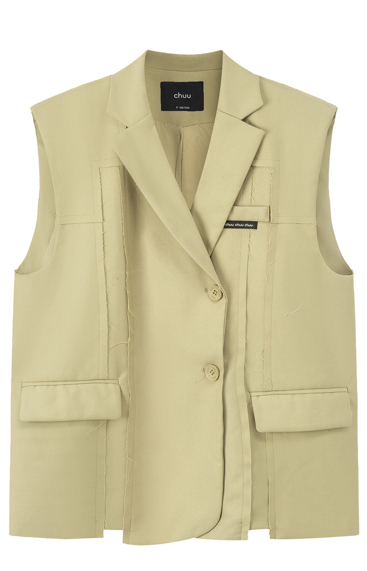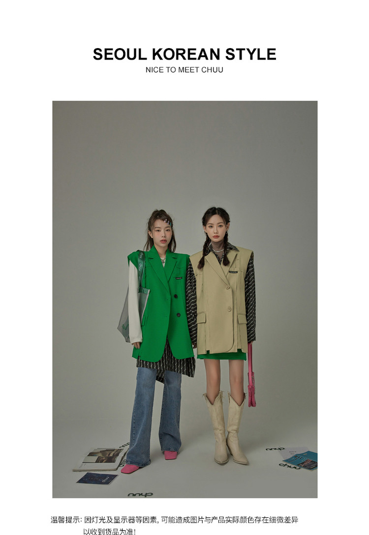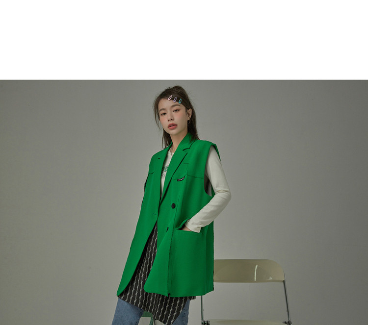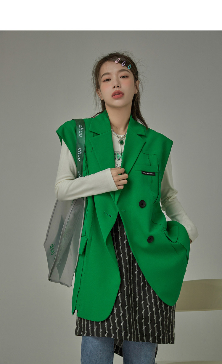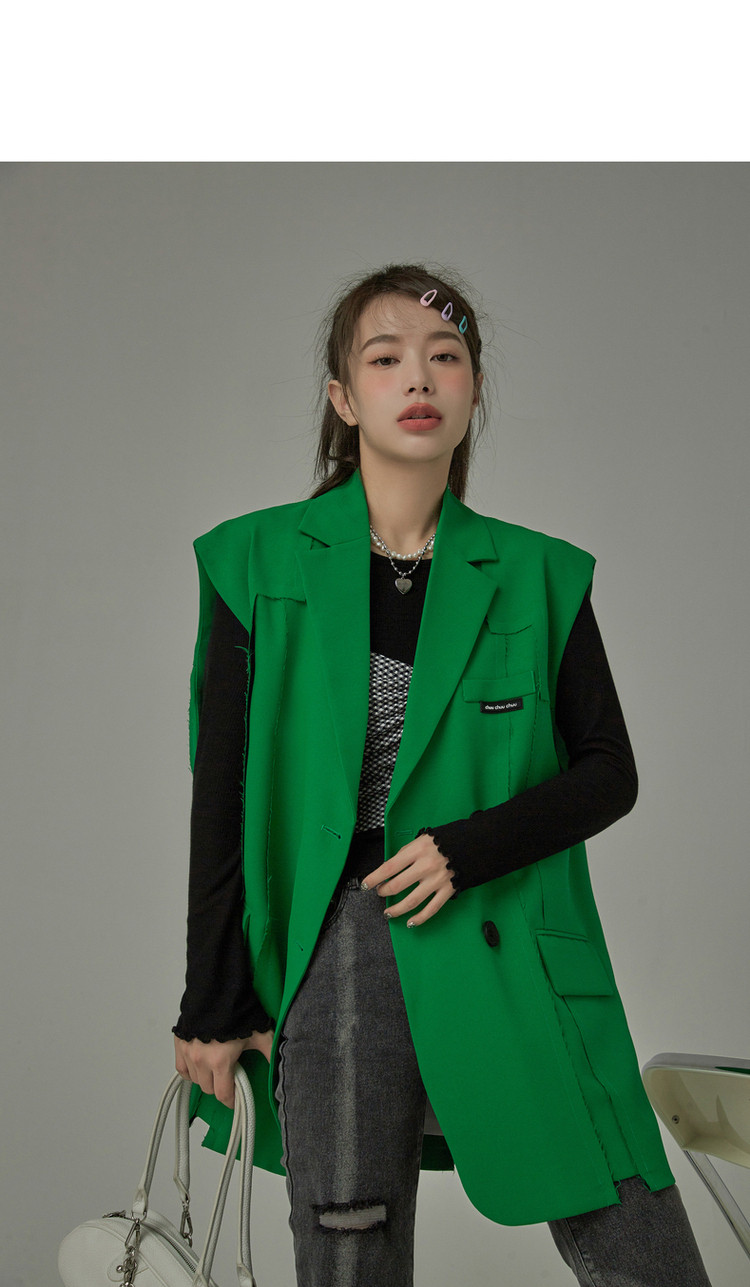 西装马甲女春秋拼接贴标工装风垂感外穿上衣 796115