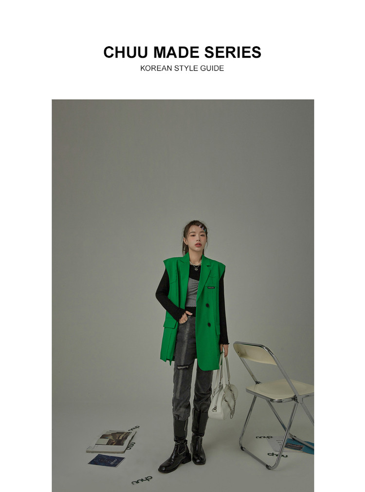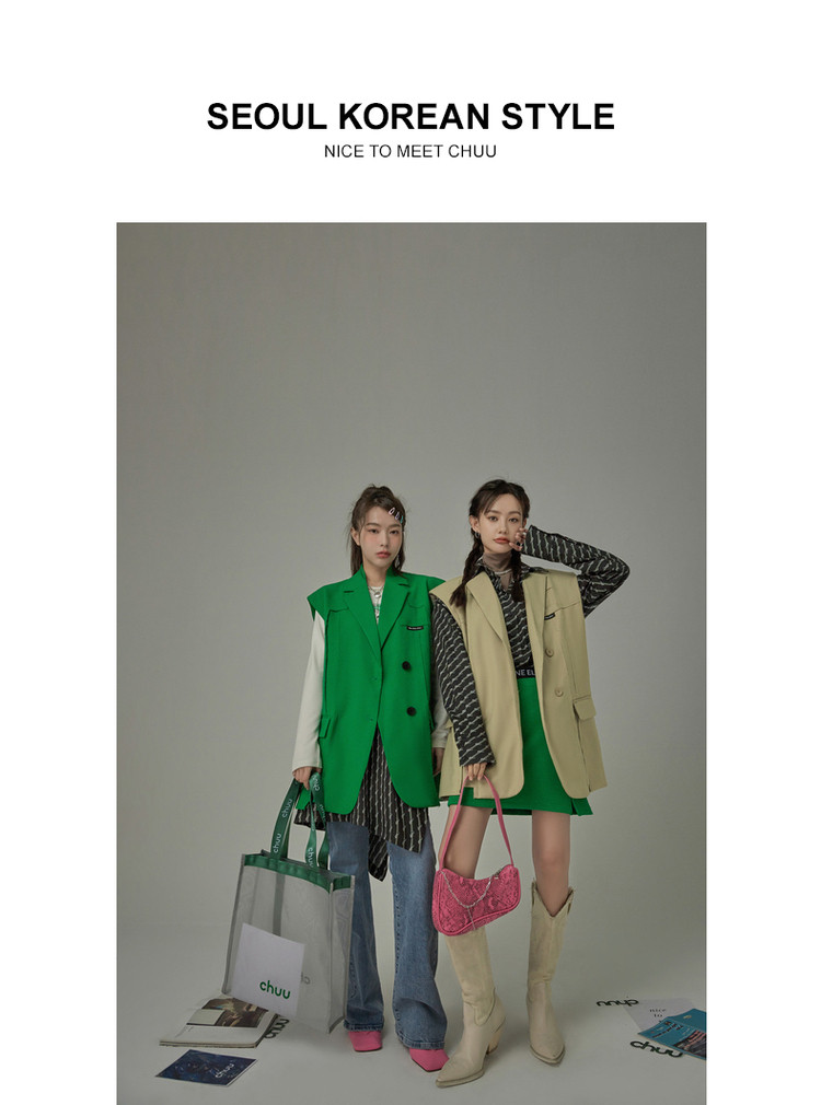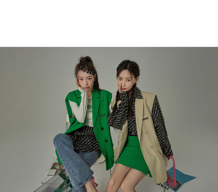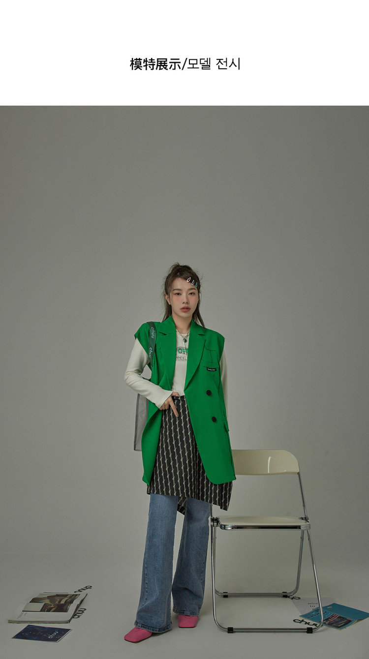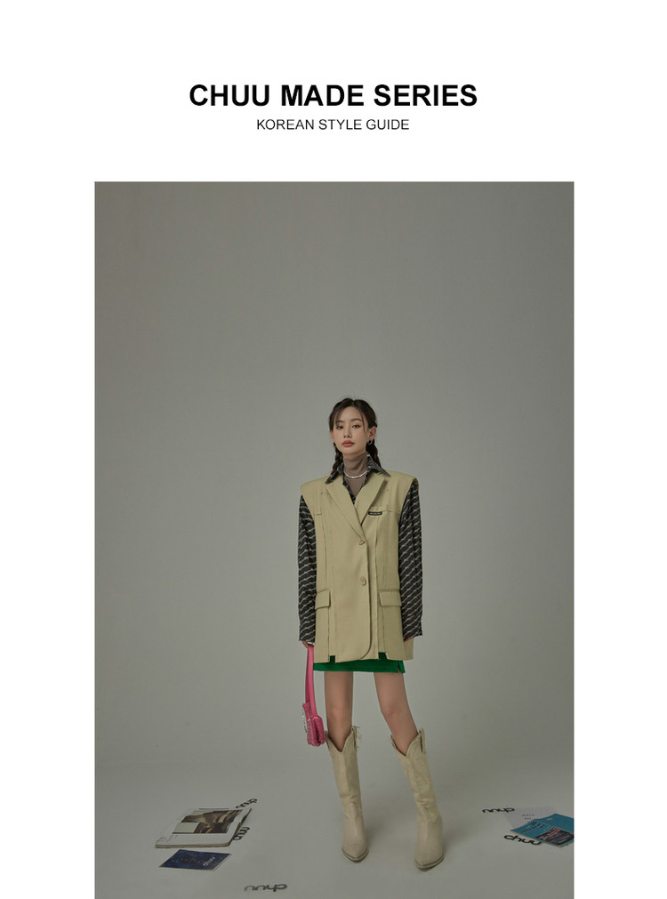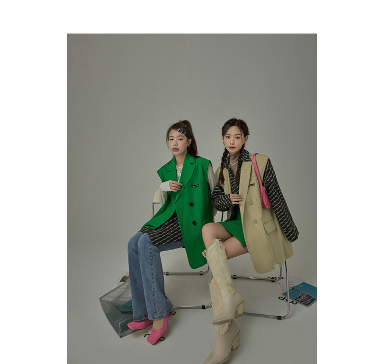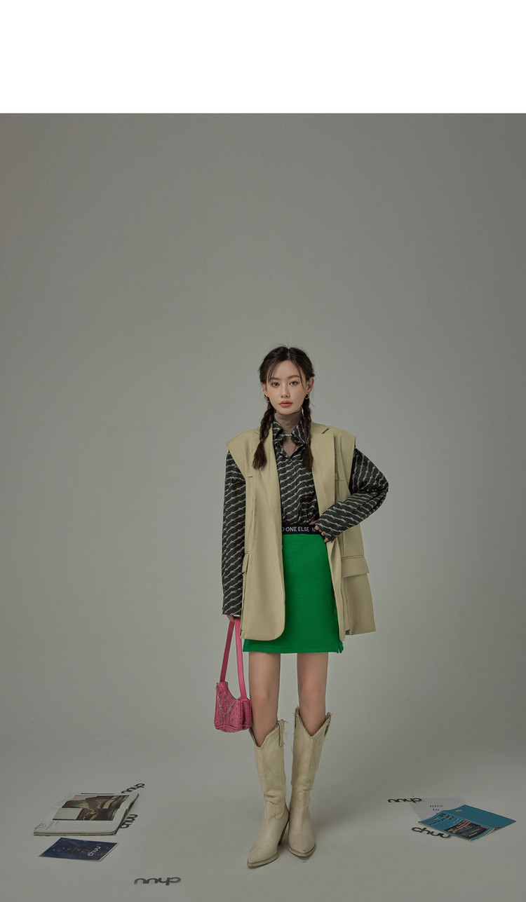 西装马甲女春秋拼接贴标工装风垂感外穿上衣 796115
