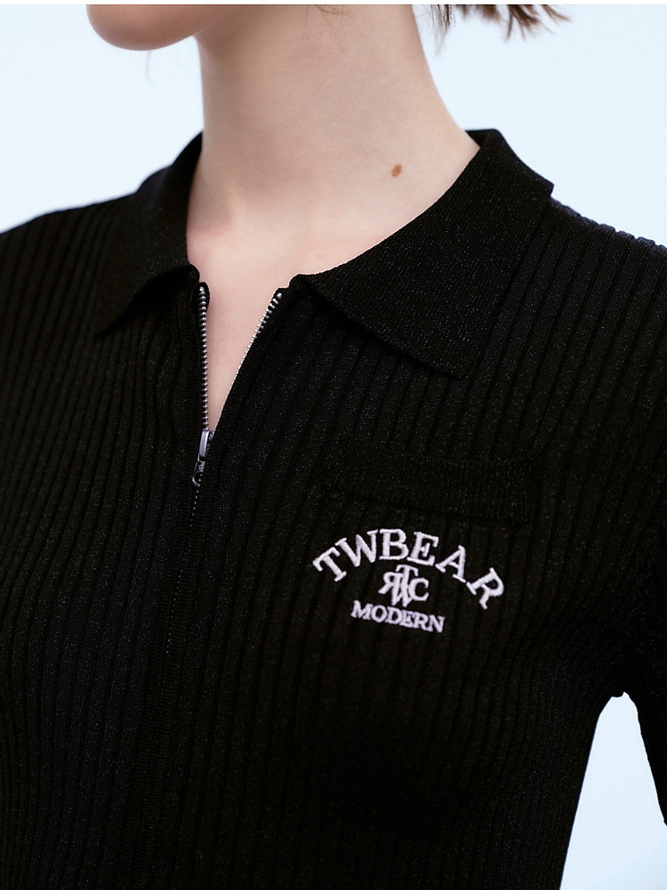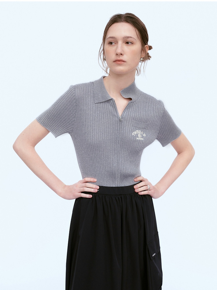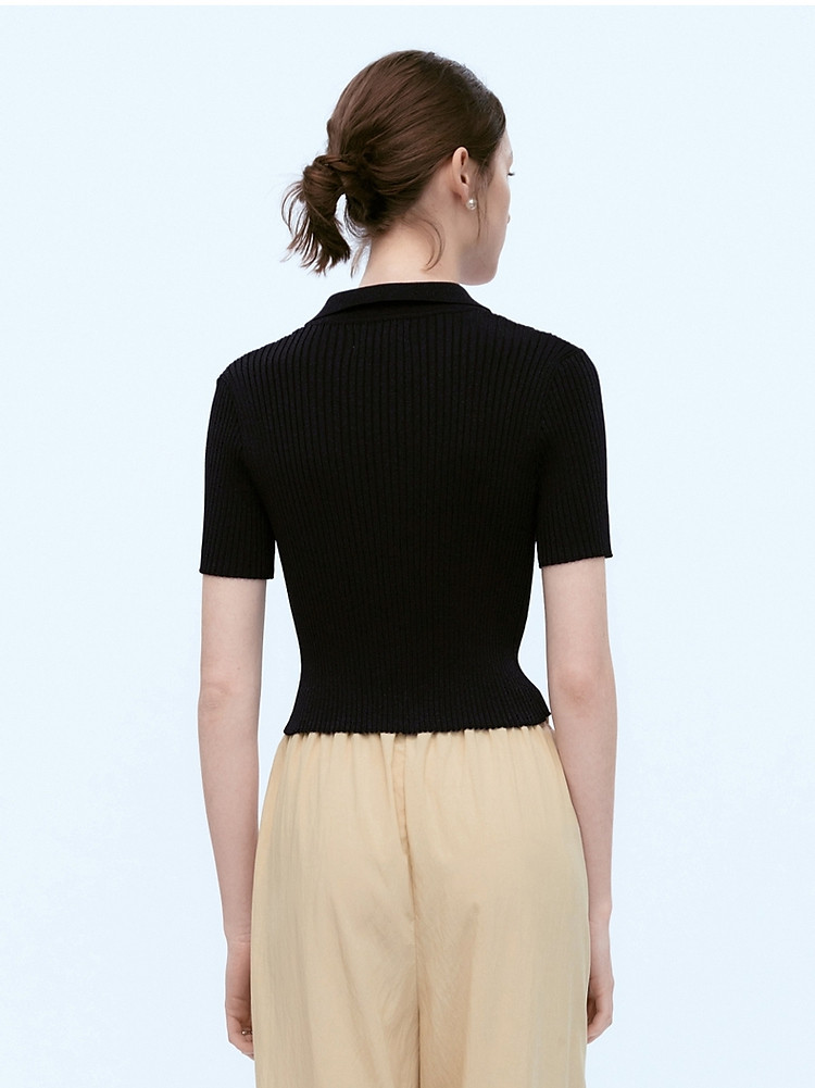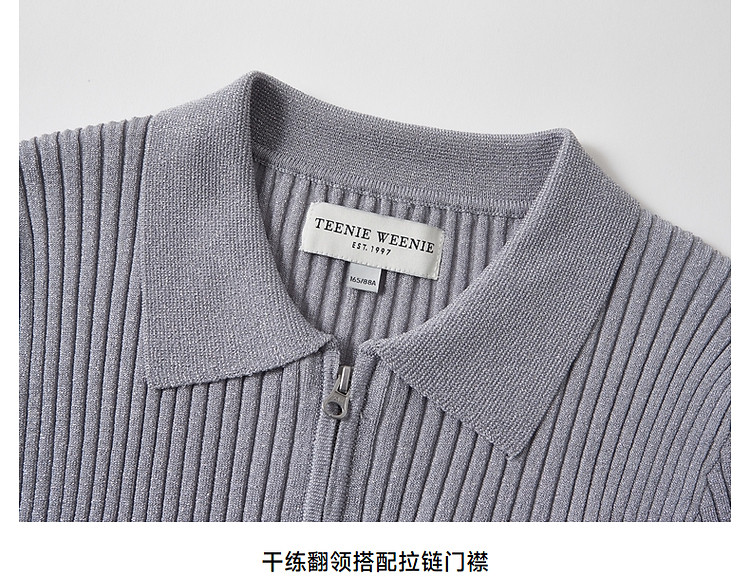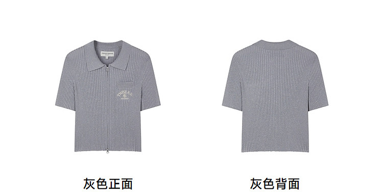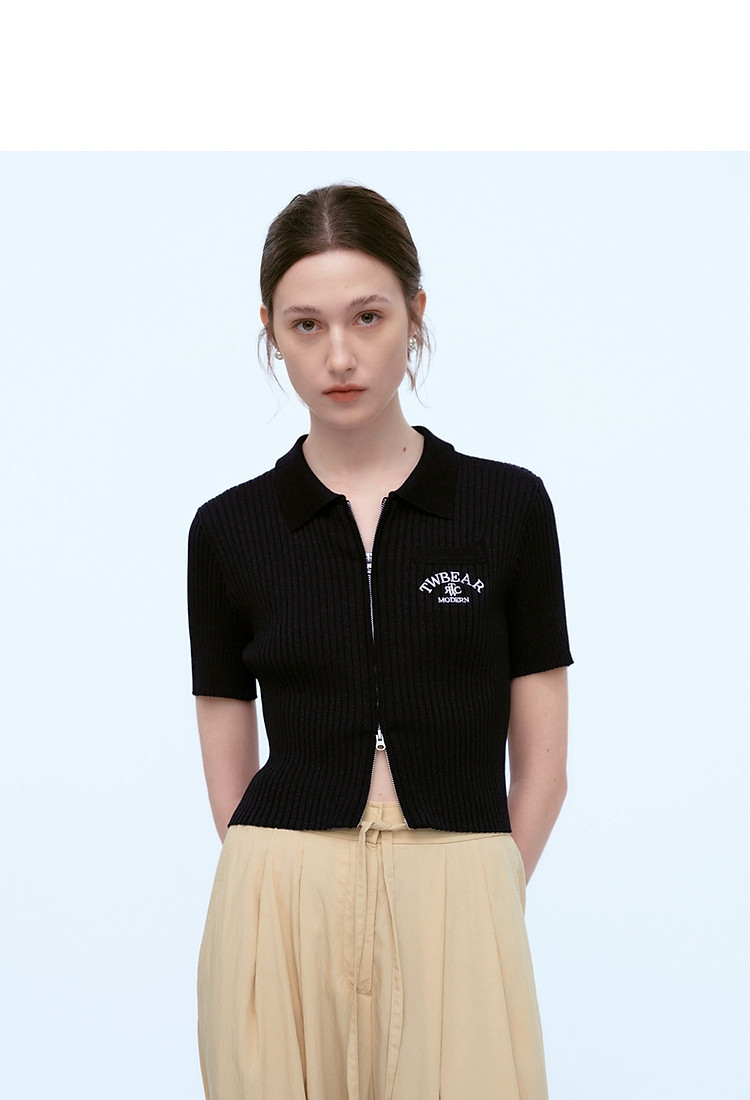 针织开衫女春夏双刺绣短袖翻领毛衣外套女 876225