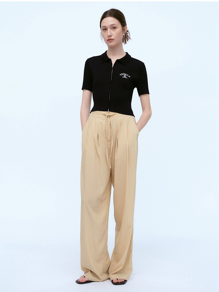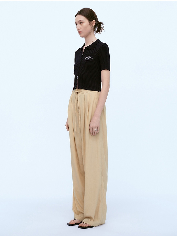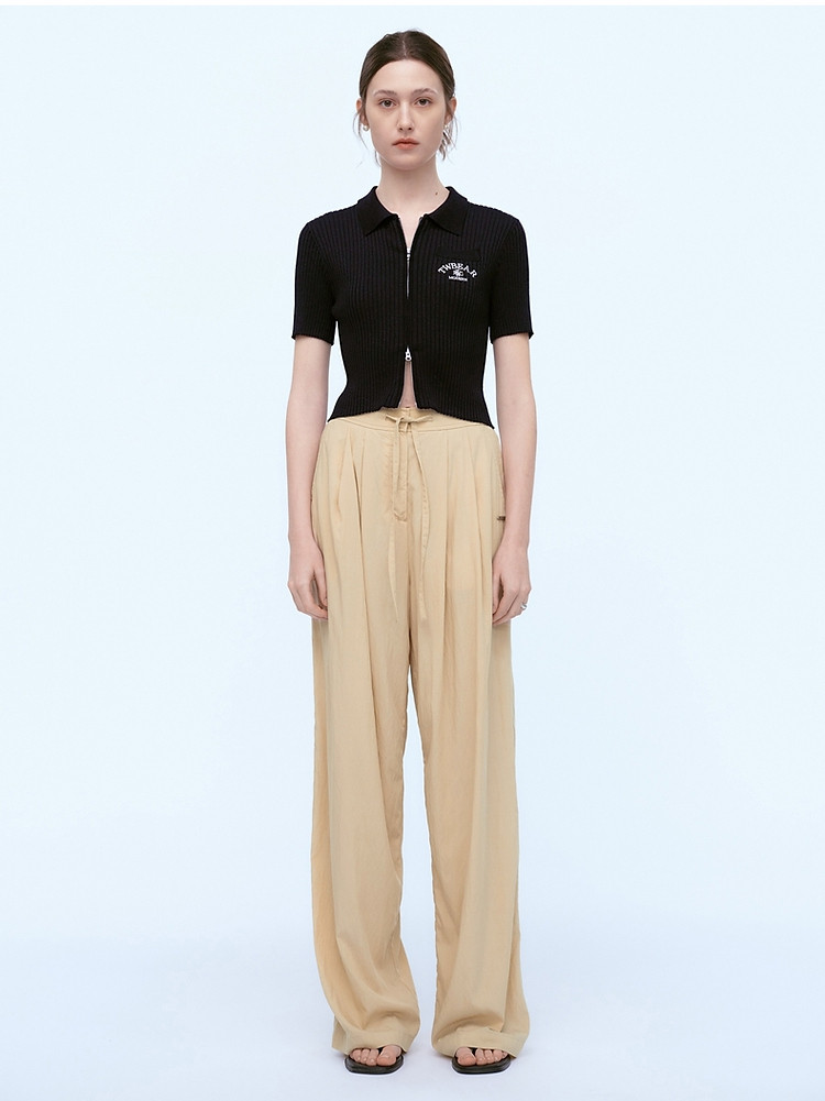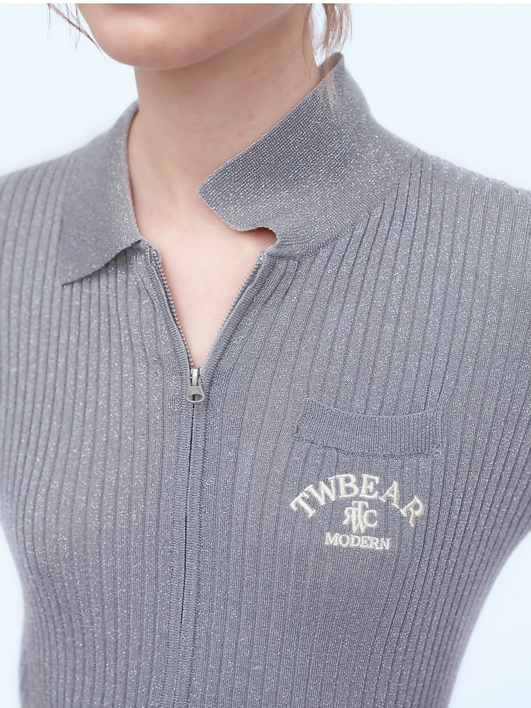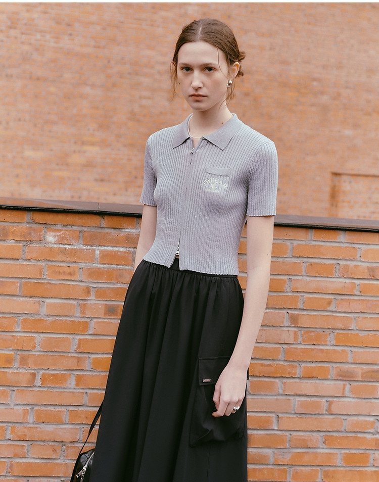 针织开衫女春夏双刺绣短袖翻领毛衣外套女 876225