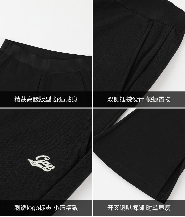 商品名称:Gap女装春夏微弹开叉高腰针织喇叭裤休闲运动长裤876139 471770