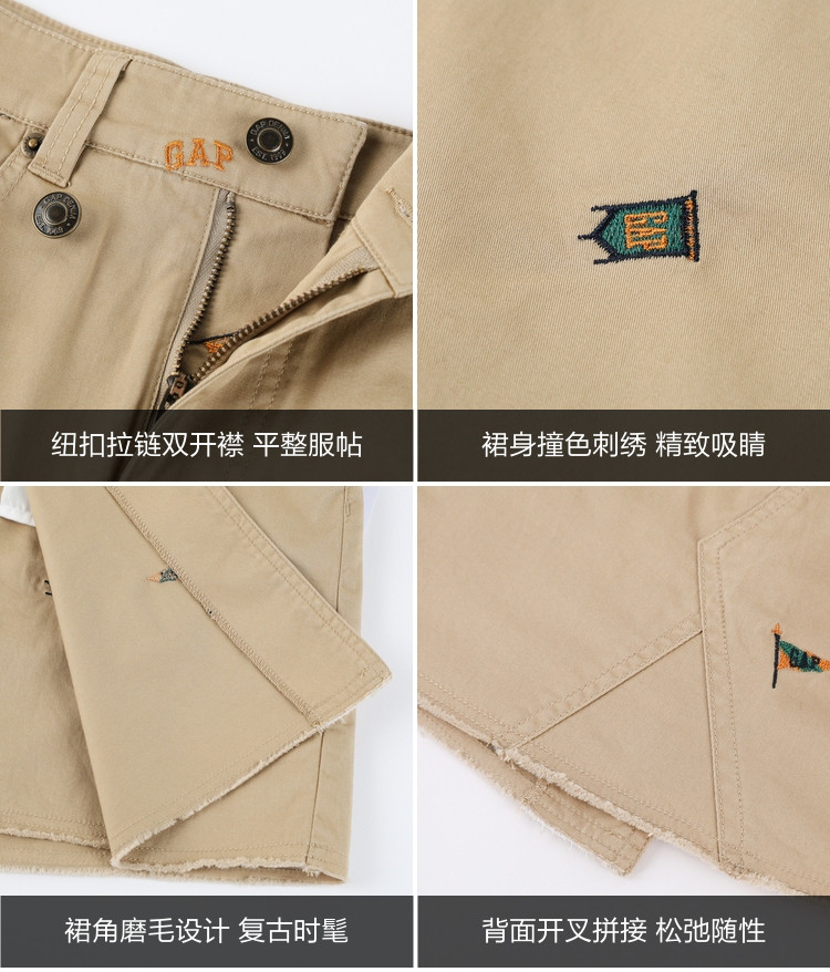 商品名称:Gap女装夏季卡其布不对称刺绣短裙百搭柔软裙装452557 512474