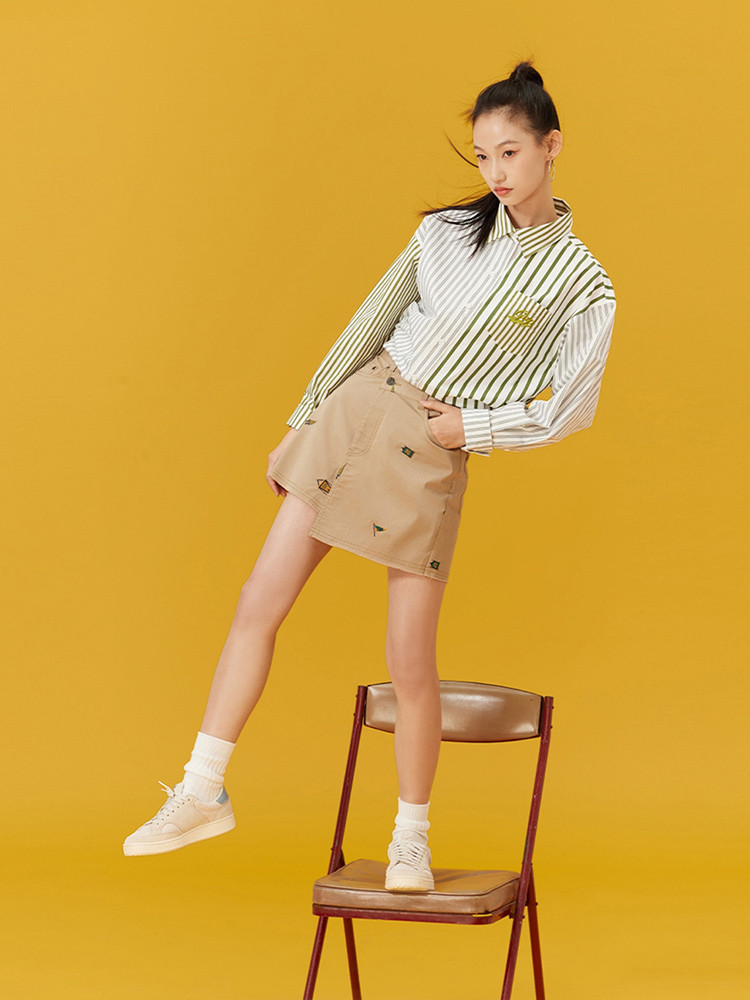 Gap女装夏季卡其布不对称刺绣短裙百搭柔软裙装452557 512474