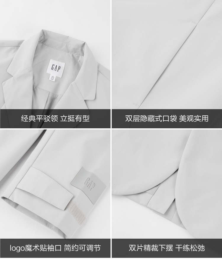 商品名称:Gap男女装春夏纯色防雨防风平驳领西装外套通勤夹克884815 326170