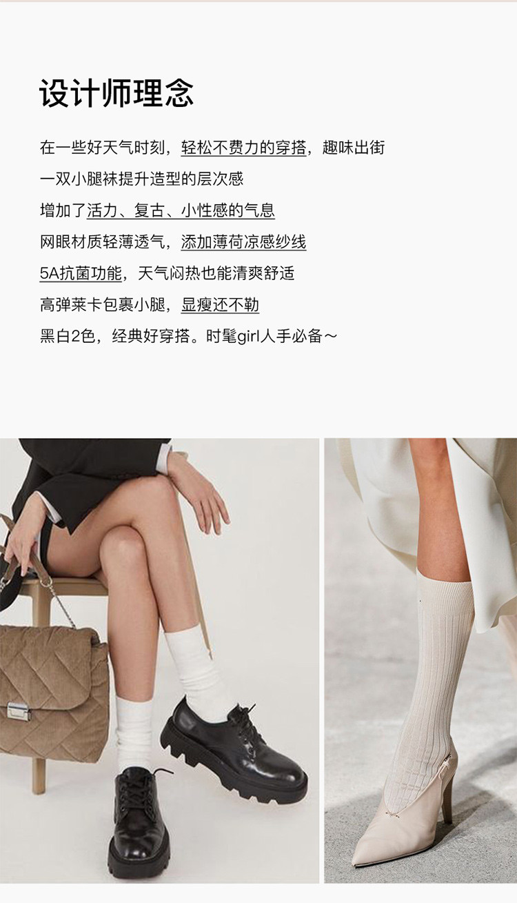商品名称:【透气】2双装轻薄网眼女士小腿袜高弹抗菌耐磨百搭显瘦女袜 174400