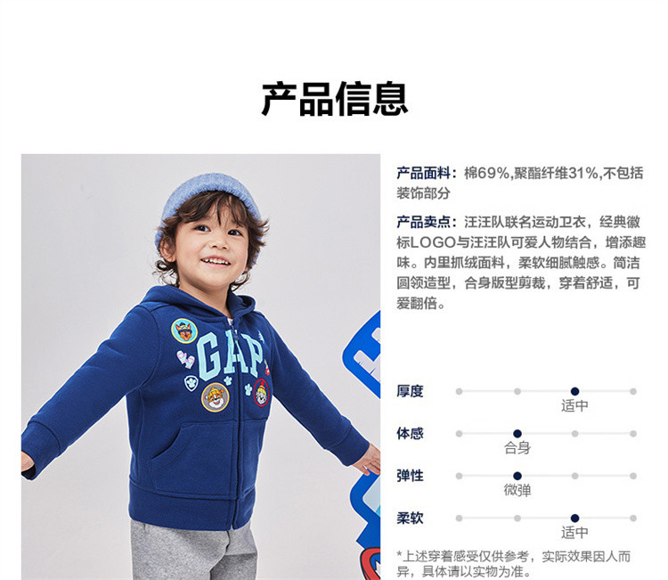 商品名称:【汪汪队联名】Gap男幼童春秋柔软抓绒保暖卫衣连帽衫847354 363418