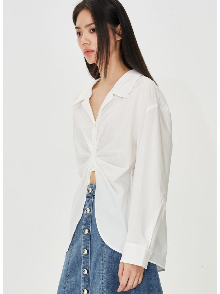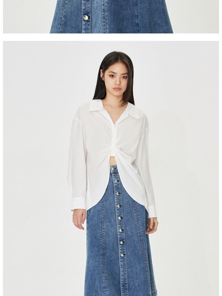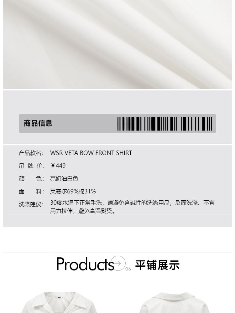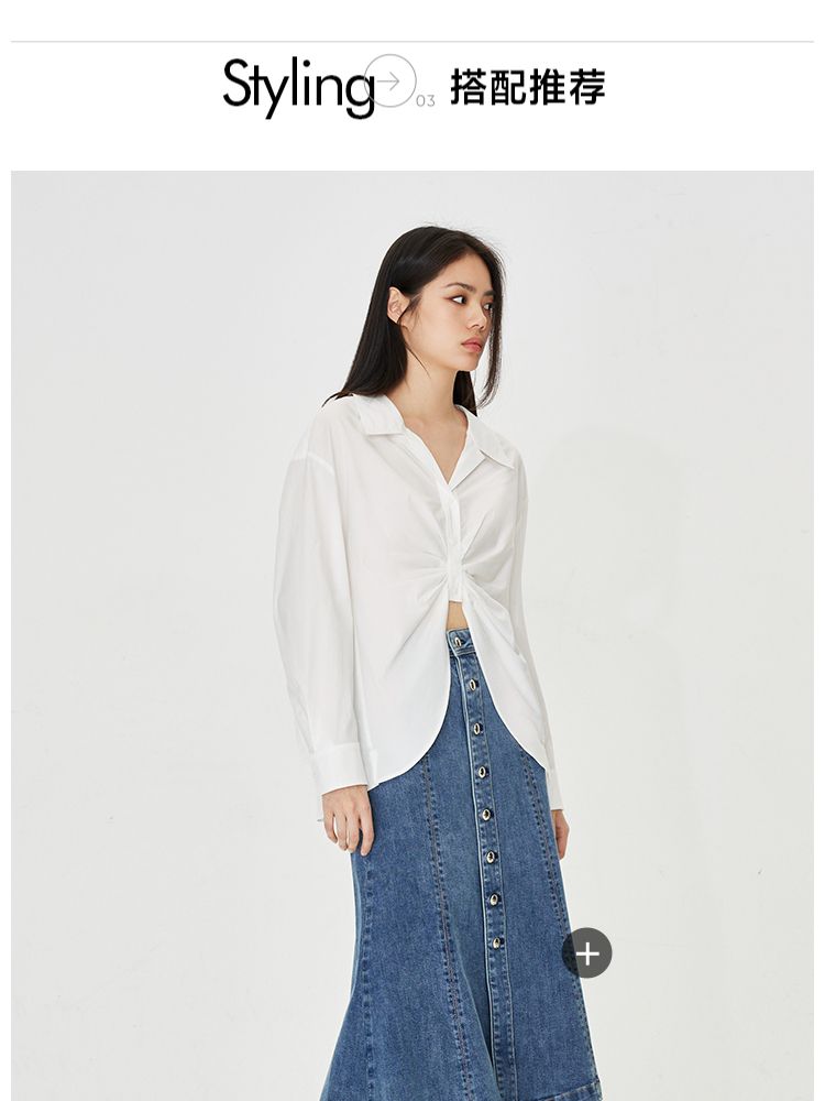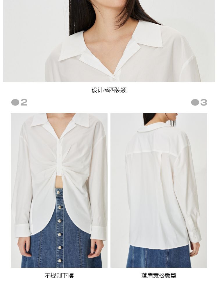 商品名称:【小众设计感】夏季含莱赛尔宽松落肩白色长袖衬衫女 712858