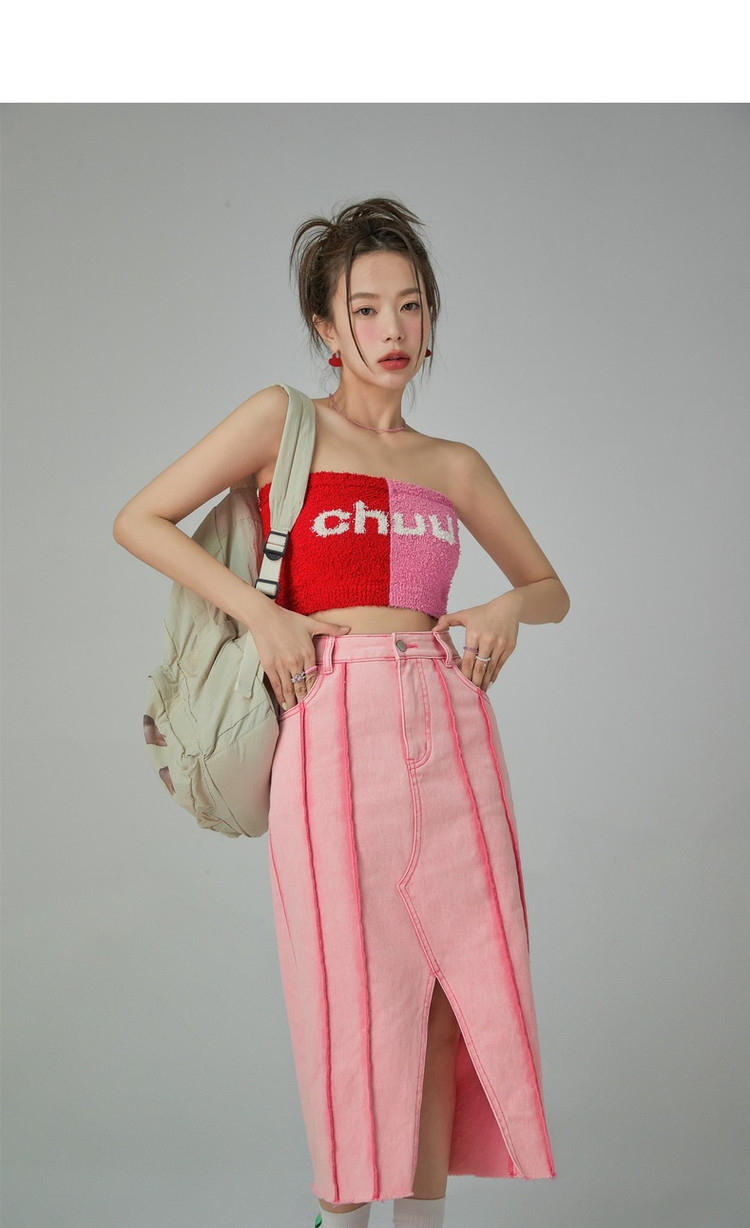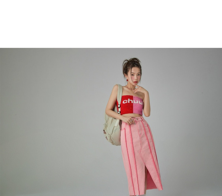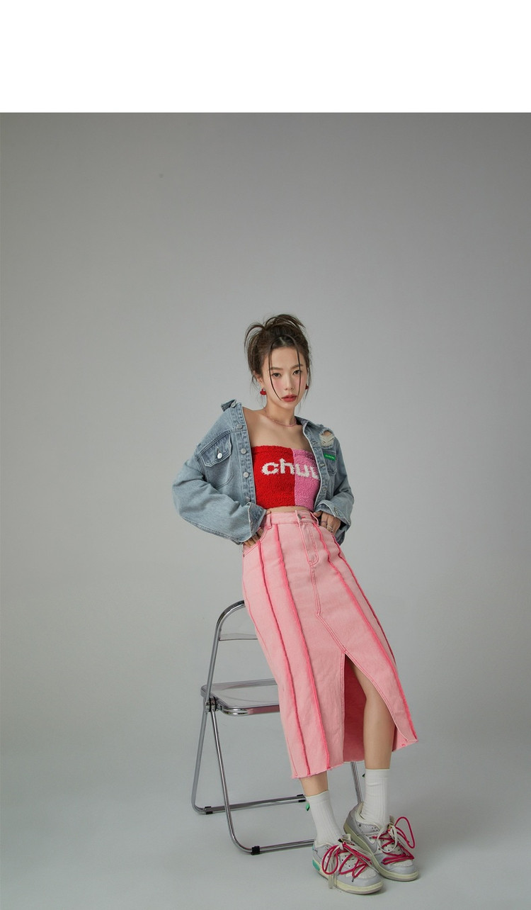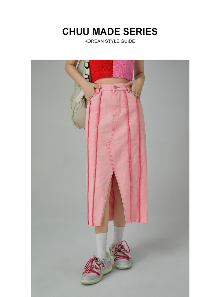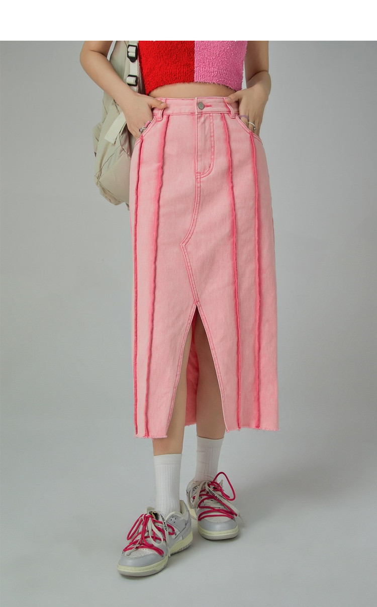 立体线条牛仔半身裙女春秋中长款包臀裙子 883603