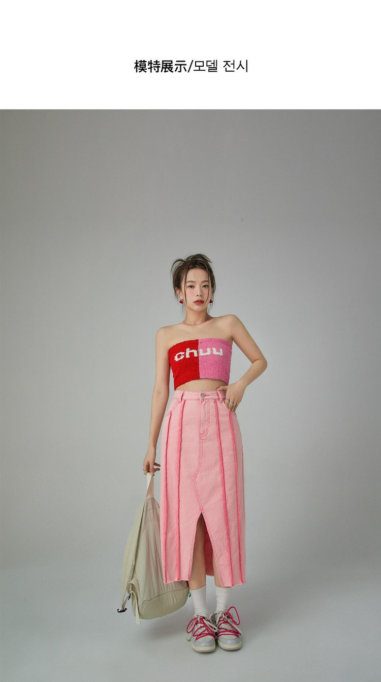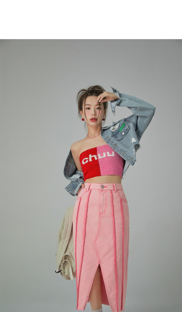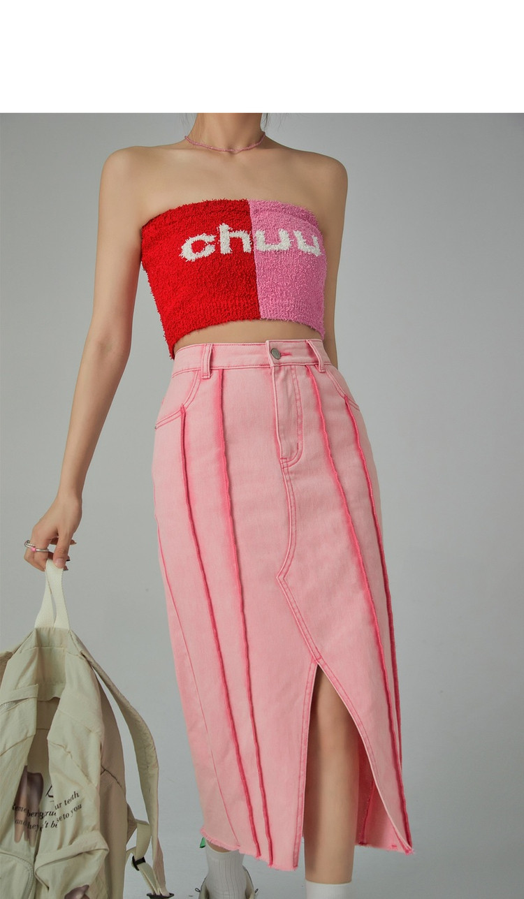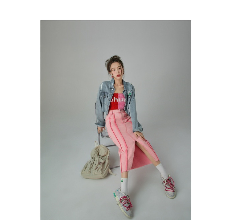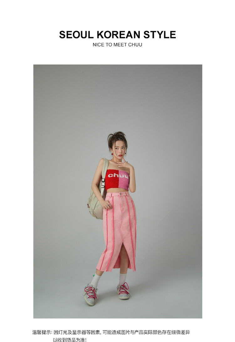 立体线条牛仔半身裙女春秋中长款包臀裙子 883603