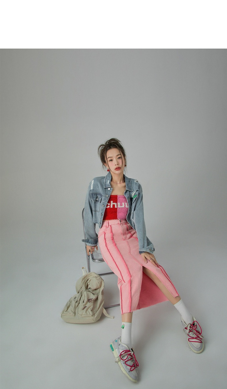 商品名称:立体线条牛仔半身裙女春秋中长款包臀裙子 883603