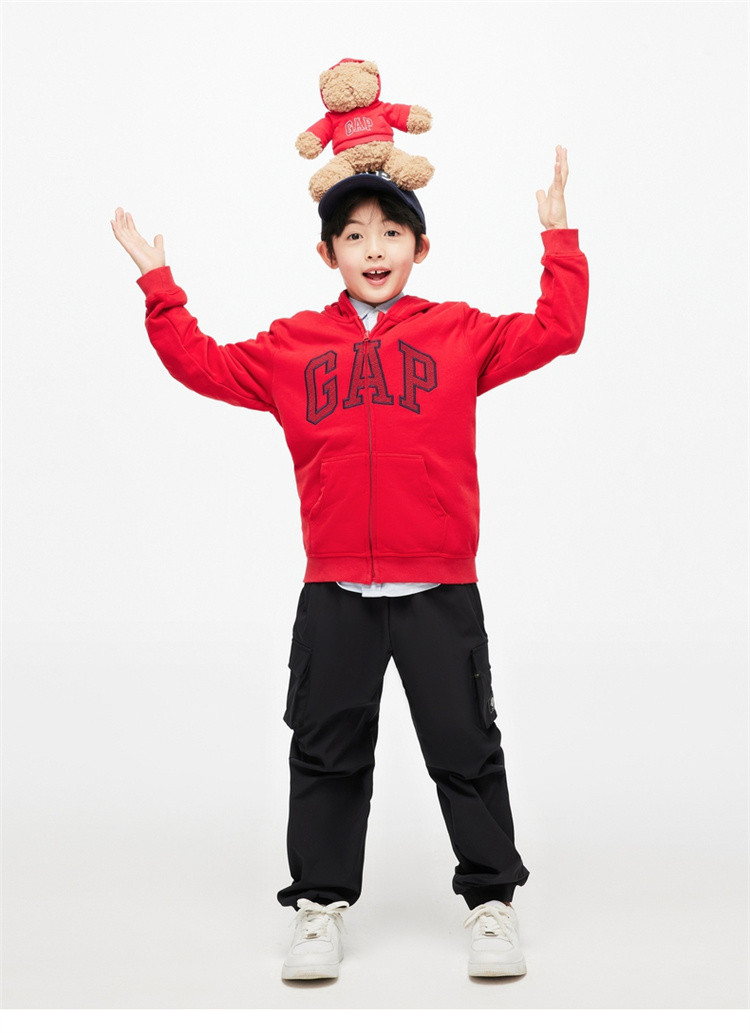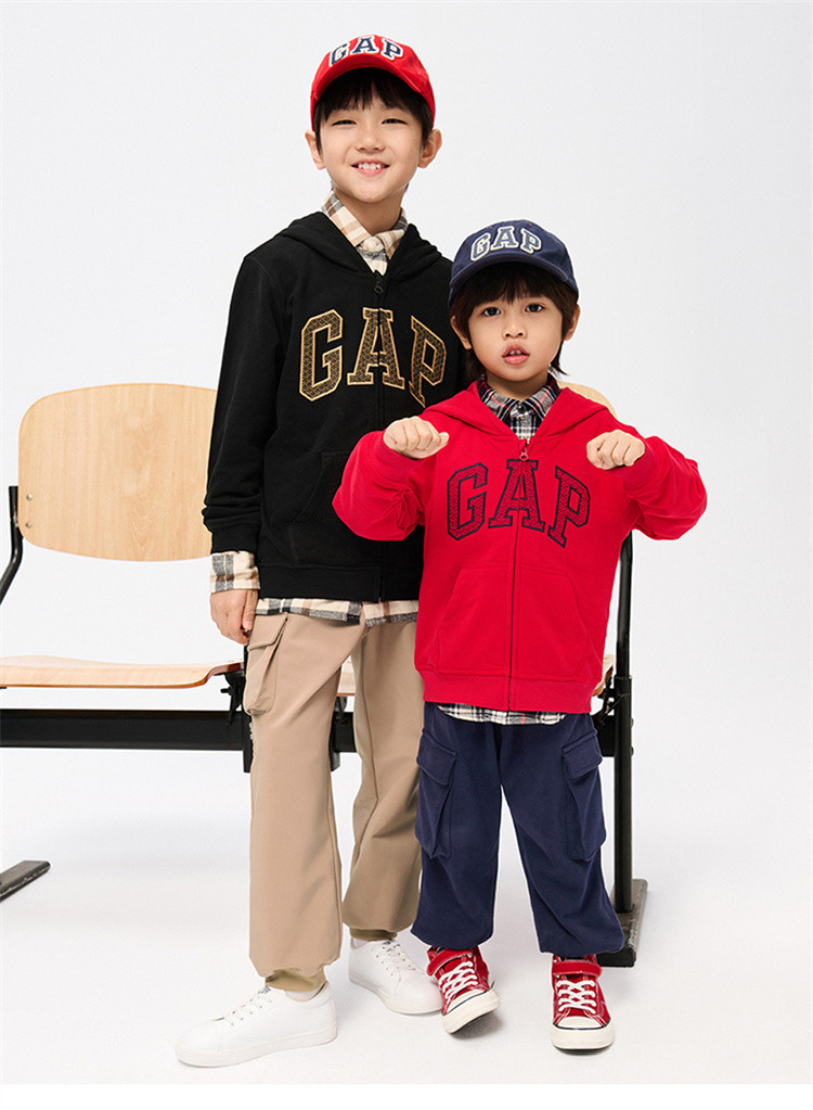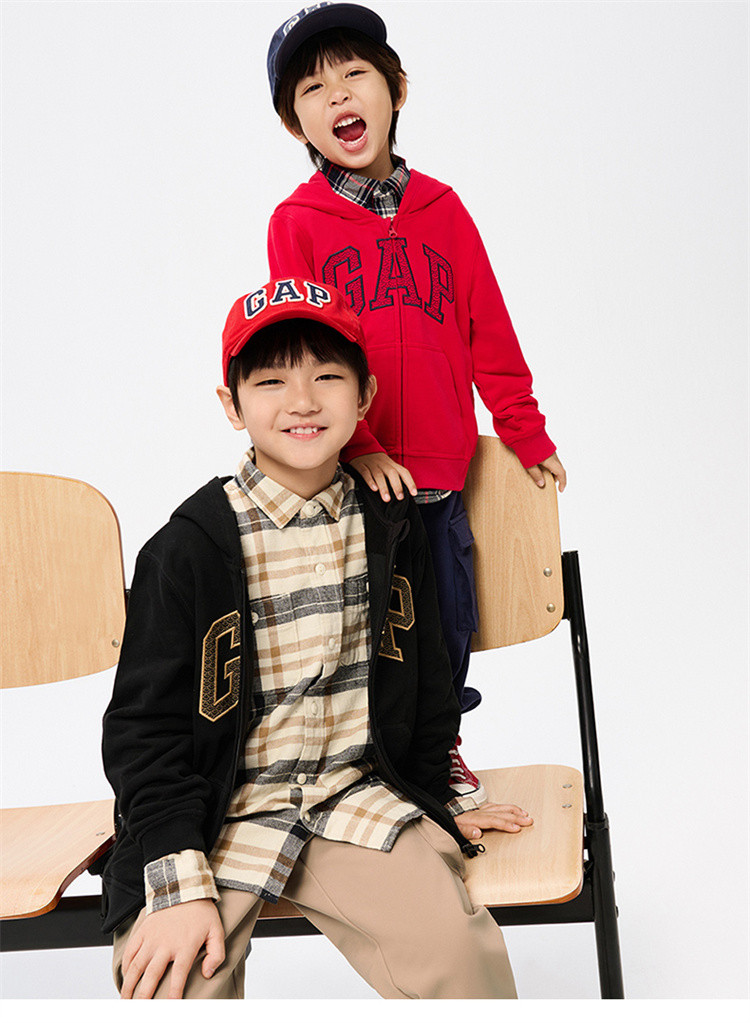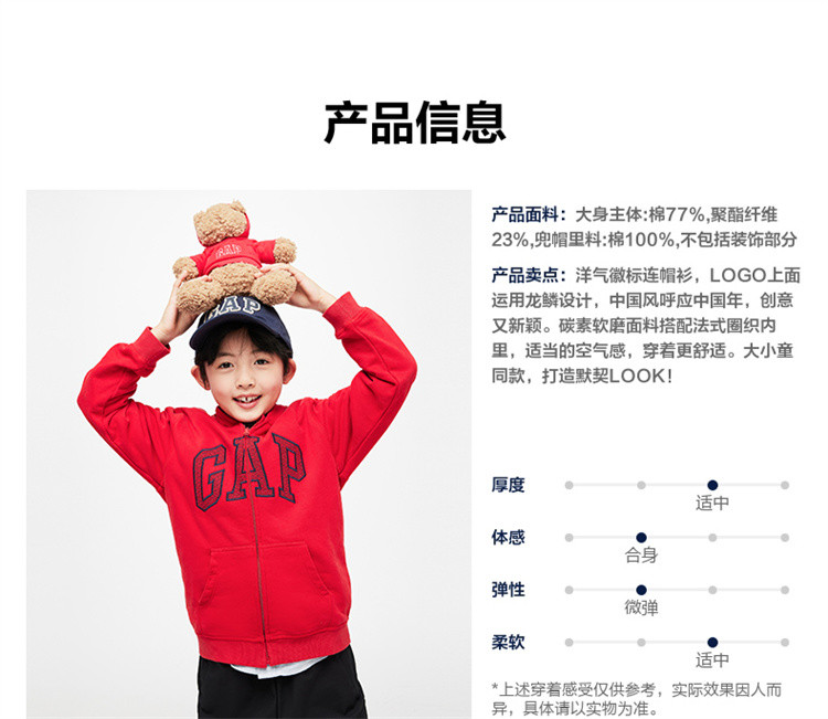 商品名称:Gap男女童春秋季洋气龙鳞LOGO法式圈织连帽衫微弹运动卫衣857492 236442