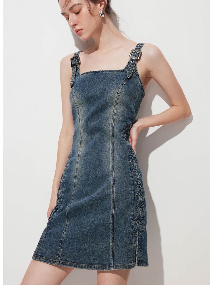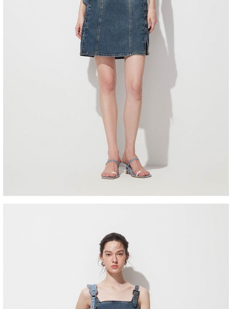 【做旧磨白】 夏季收腰牛仔吊带短裙连衣裙女 002522