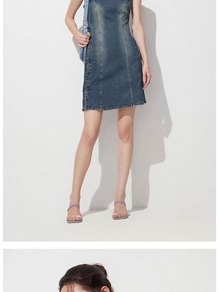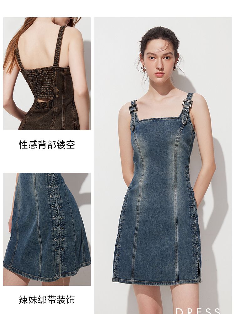 商品名称:【做旧磨白】 夏季收腰牛仔吊带短裙连衣裙女 002522