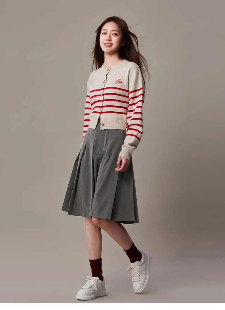 Gap女装夏洋气A字型高腰百褶裙半身裙高级廓形显瘦裙装730476 993050