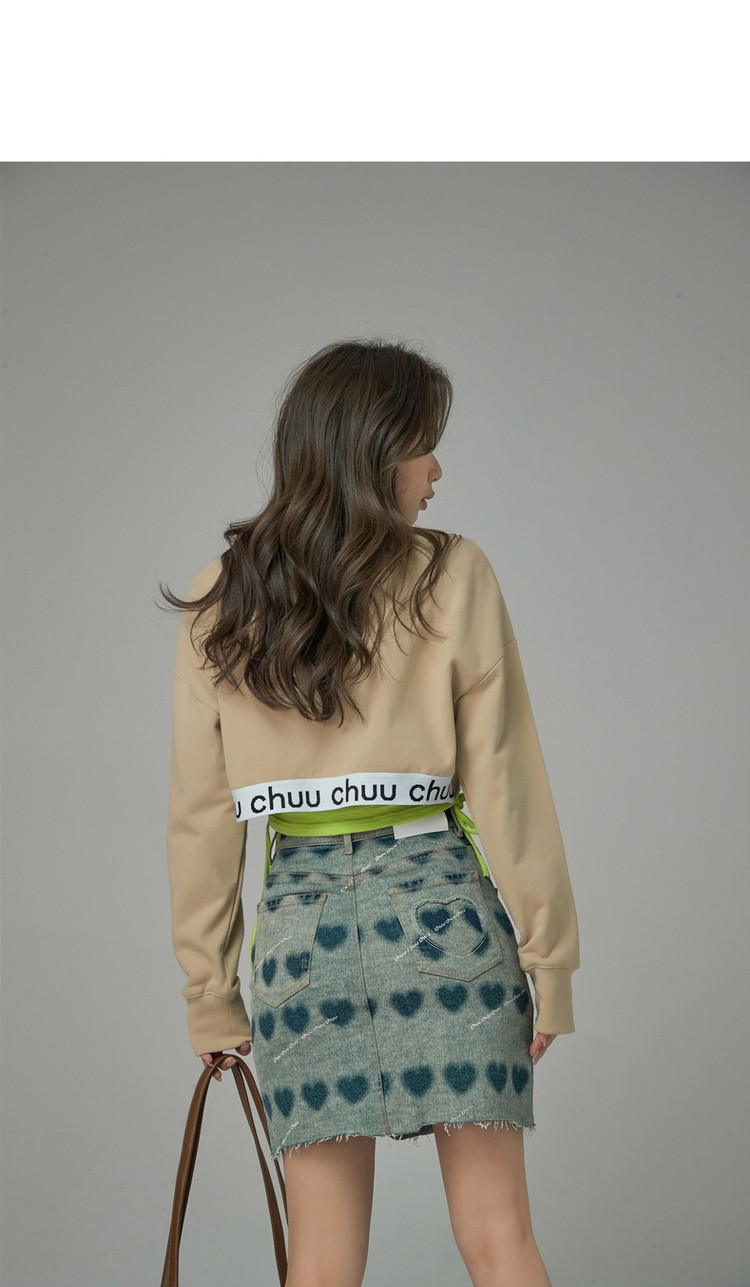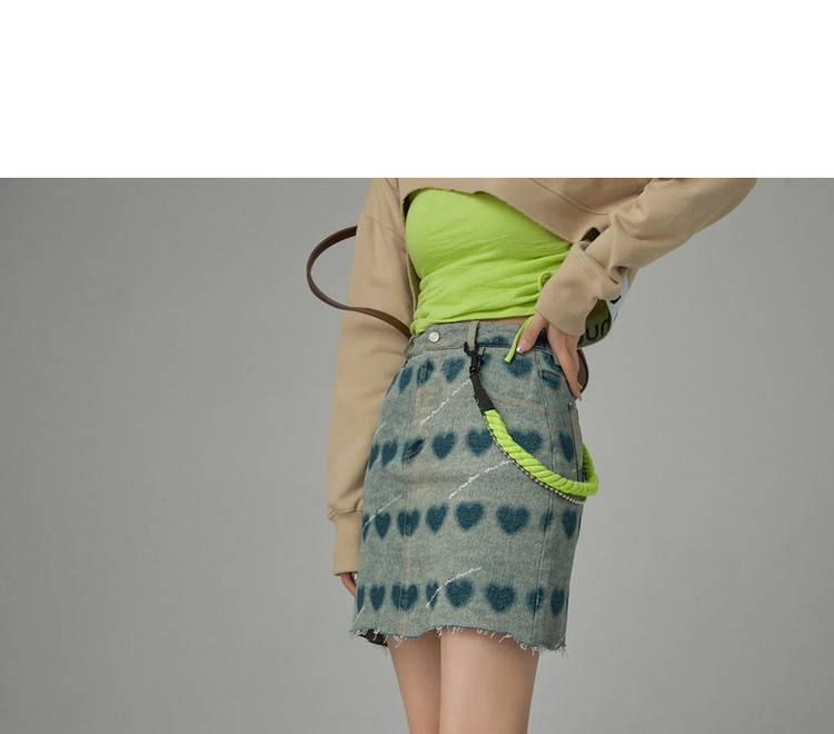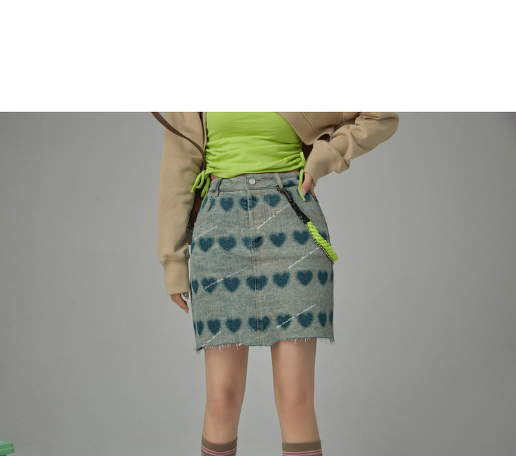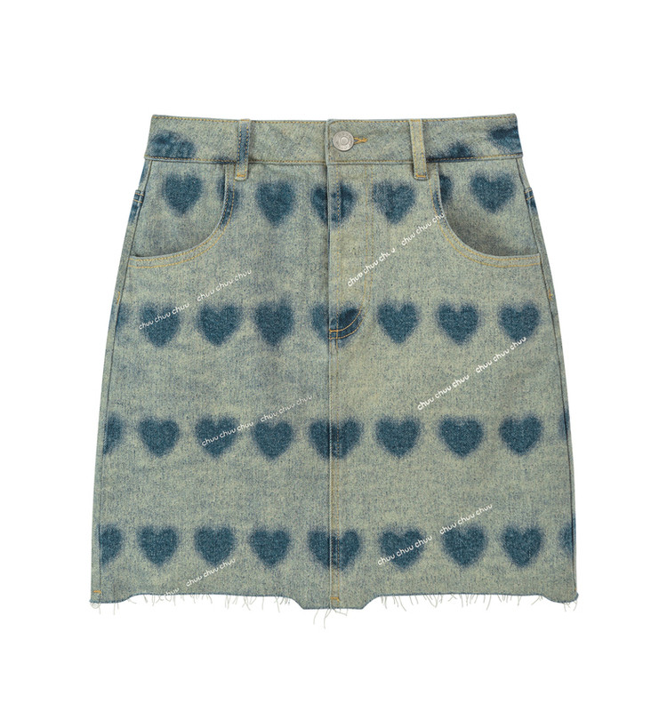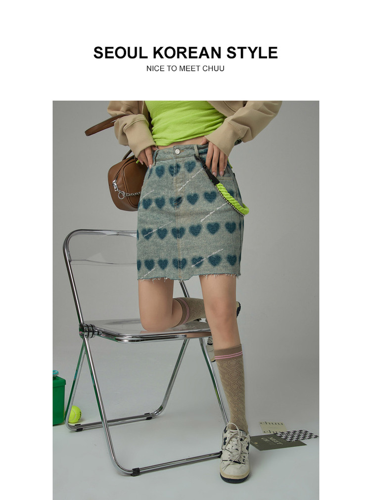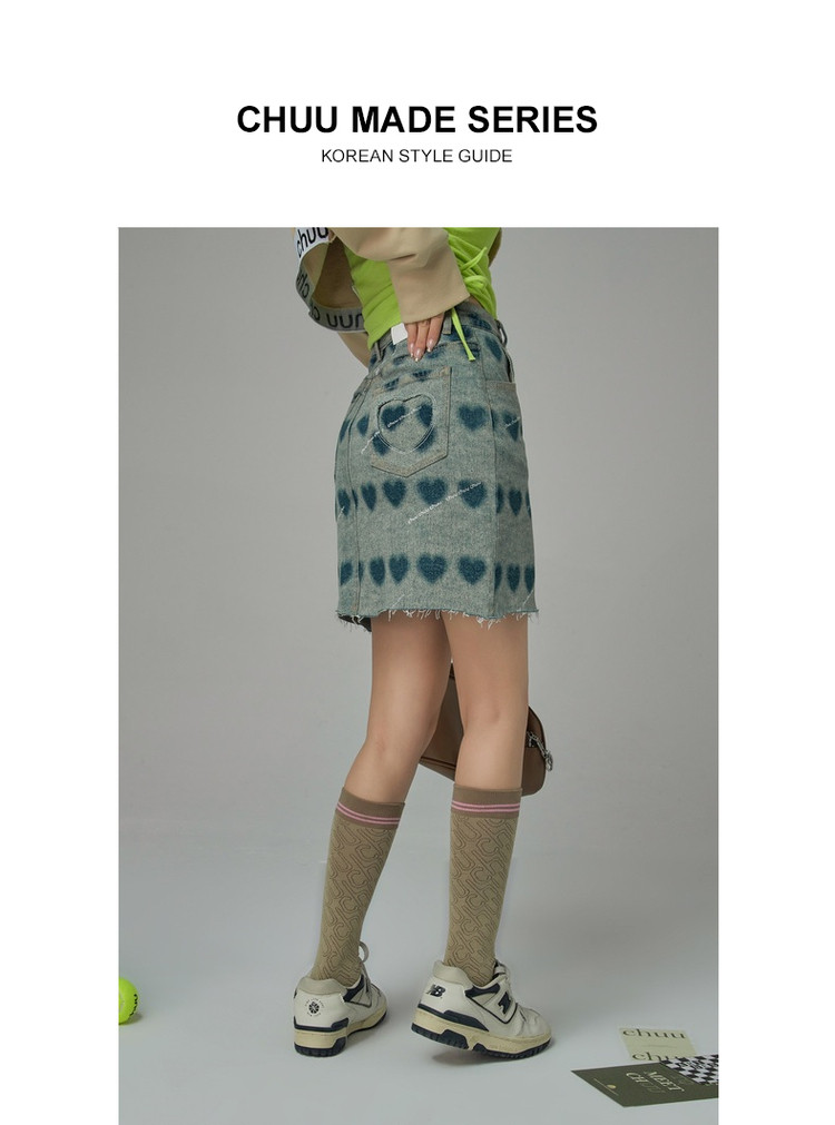 CHUU爱心印花牛仔半身裙女士春秋显瘦a字短裙子 363539