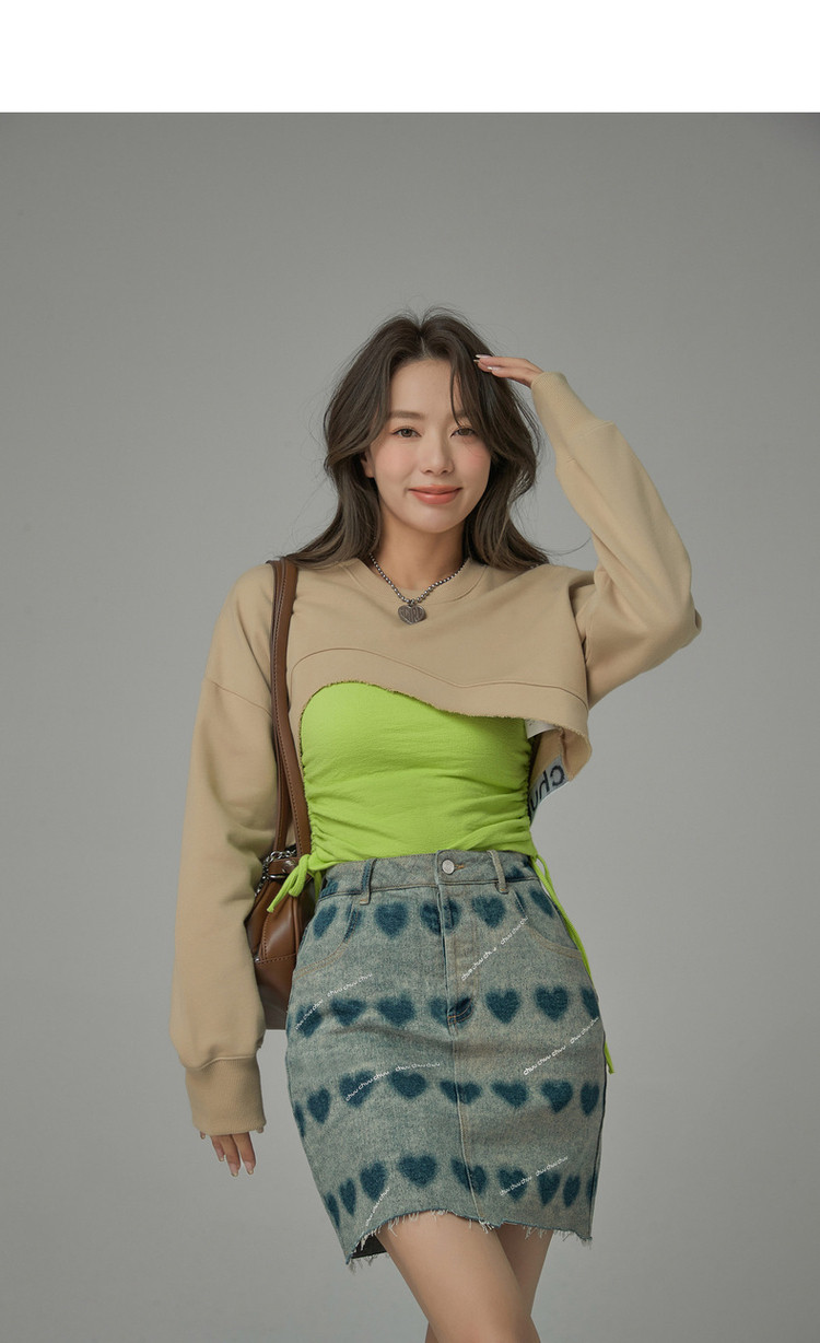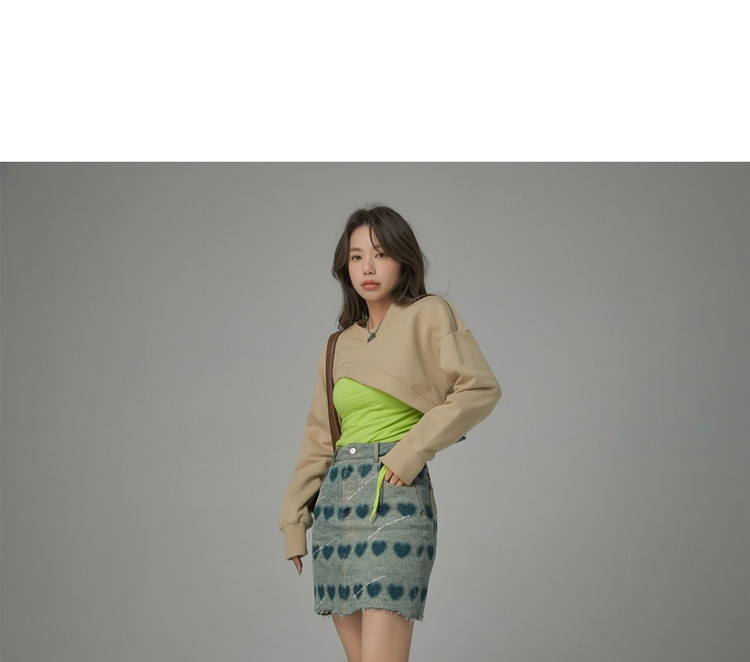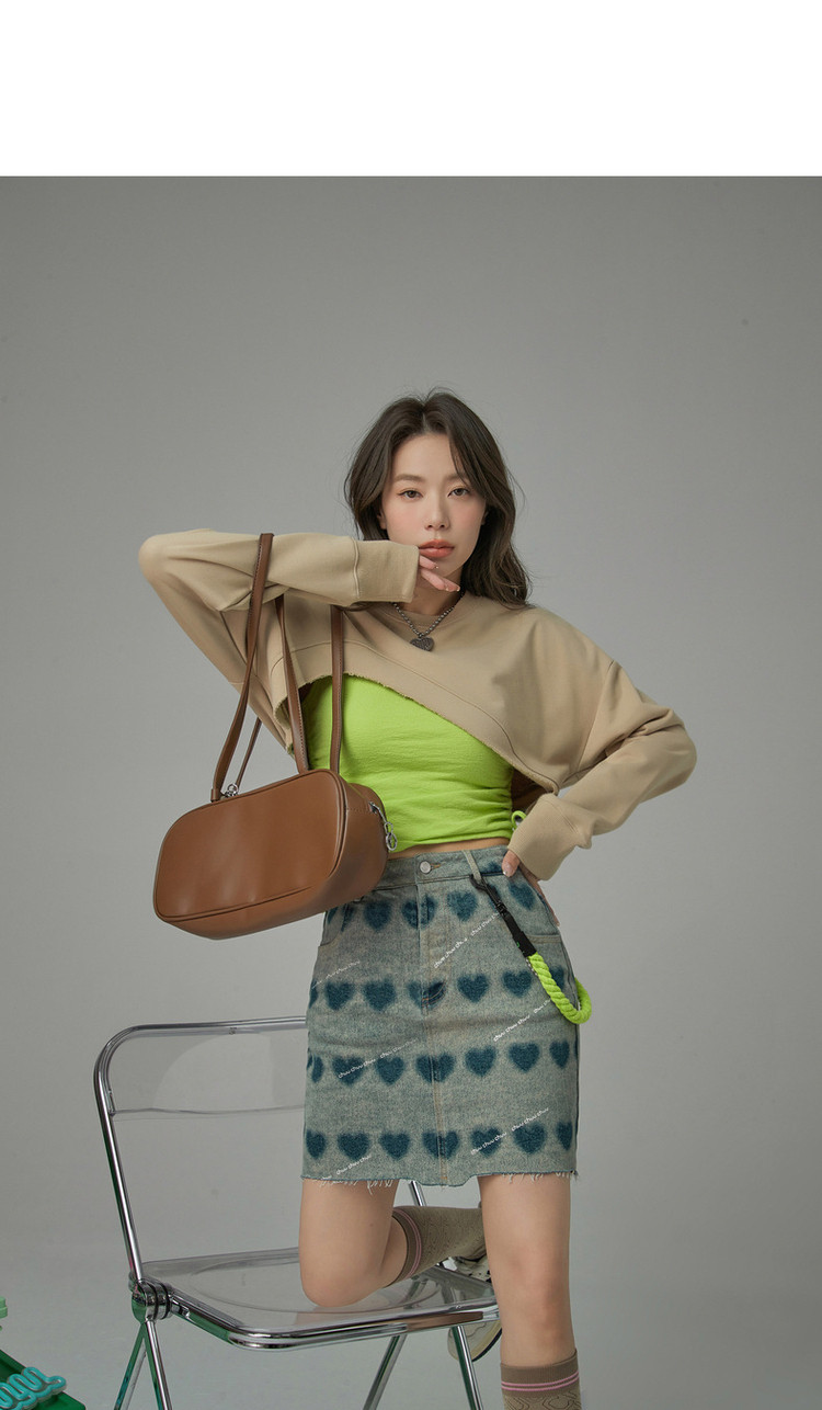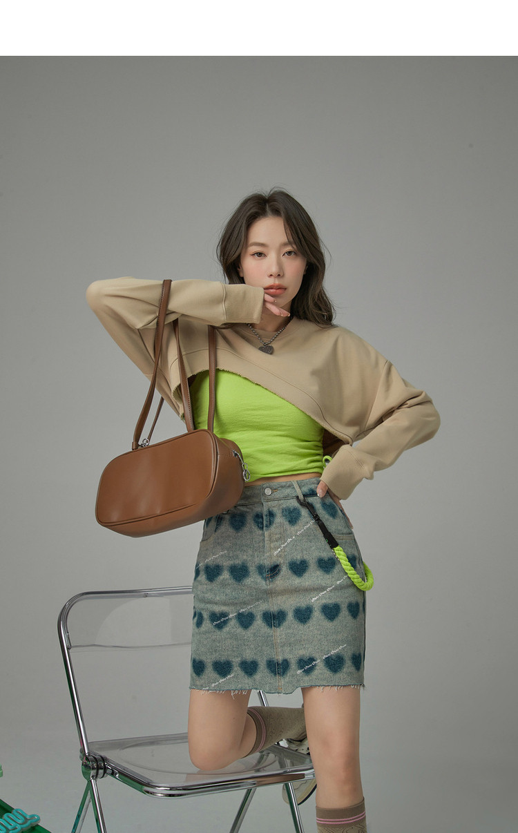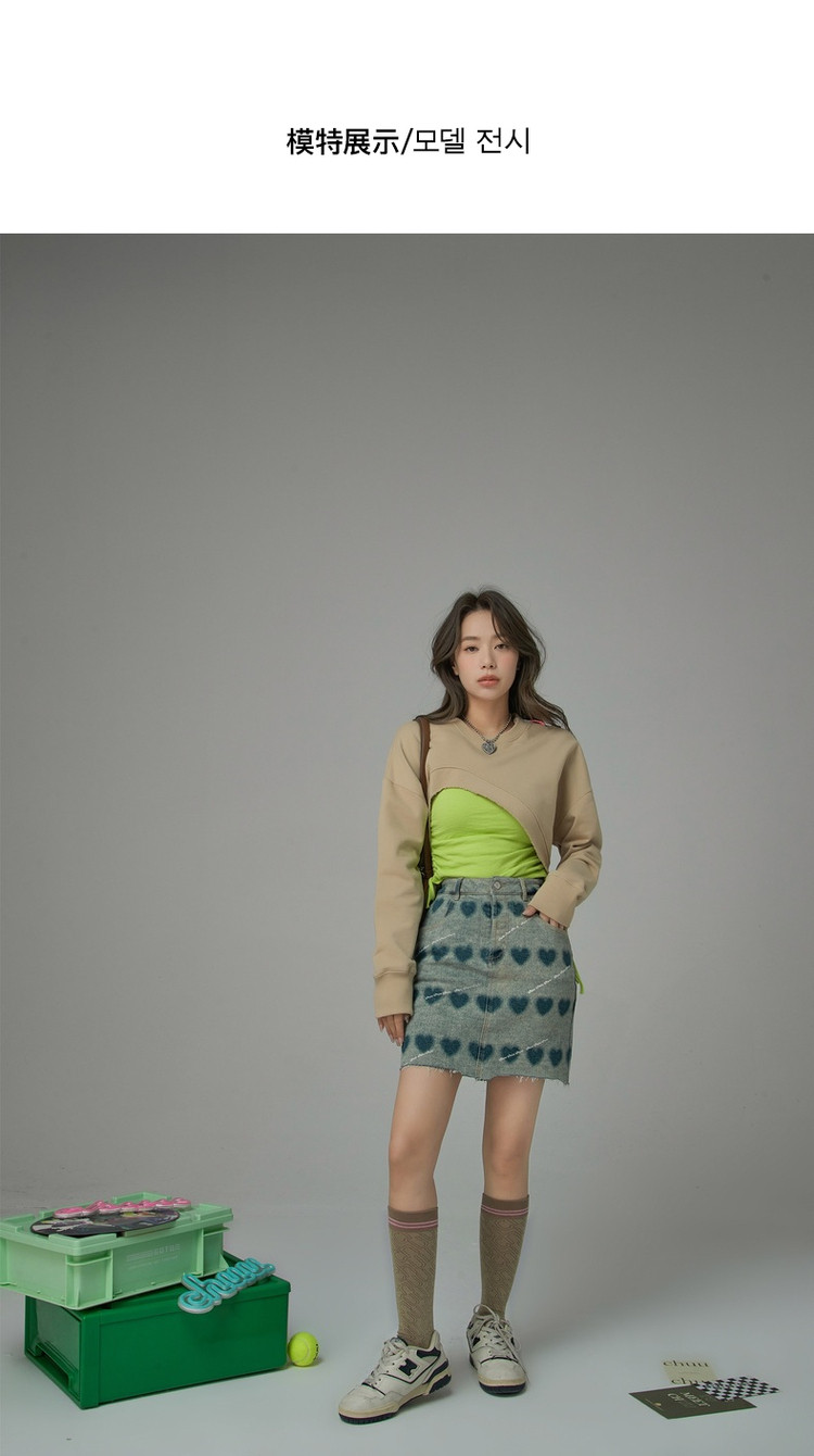 CHUU爱心印花牛仔半身裙女士春秋显瘦a字短裙子 363539