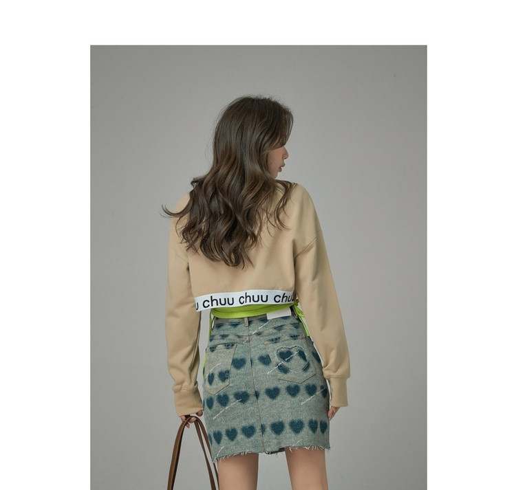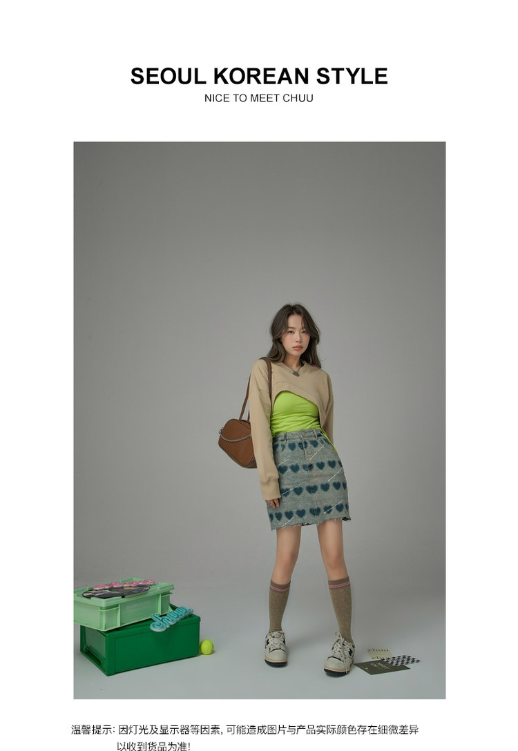 商品名称:CHUU爱心印花牛仔半身裙女士春秋显瘦a字短裙子 363539
