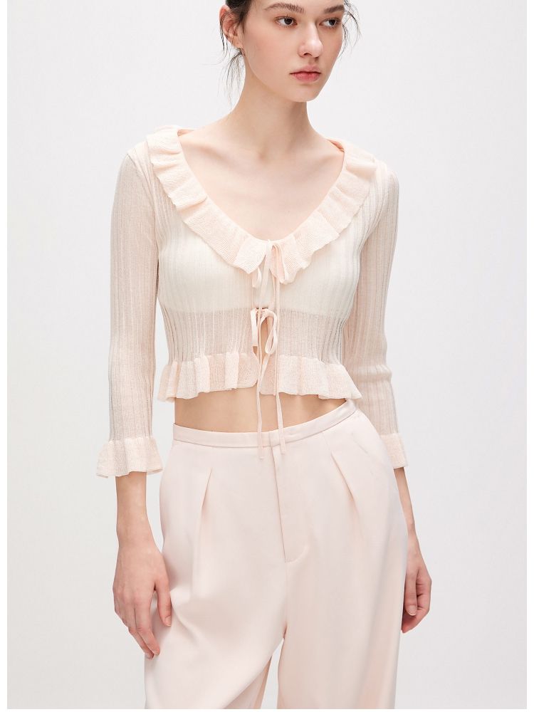 【设计感】夏季修身短款开衫七分袖针织衫女 348442
