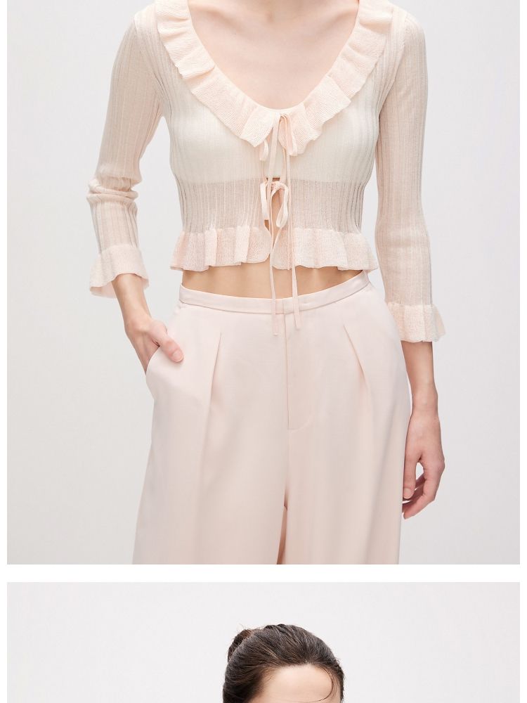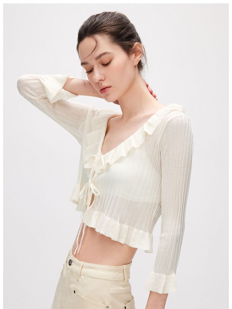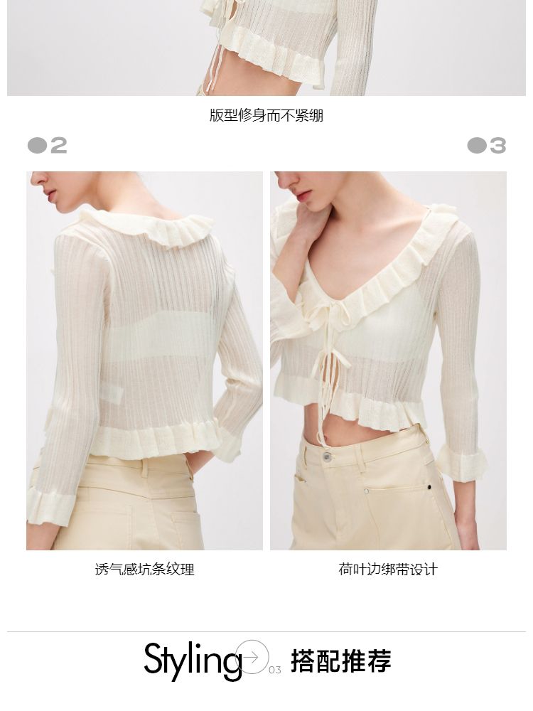 商品名称:【设计感】夏季修身短款开衫七分袖针织衫女 348442