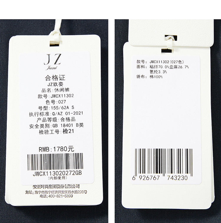 商品名称:JZ玖姿商场同款七分休闲裤阔腿裤女装夏季JWCX11302 812940