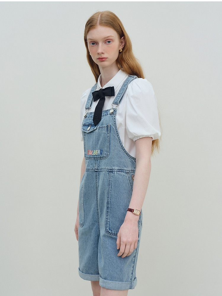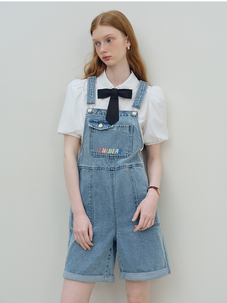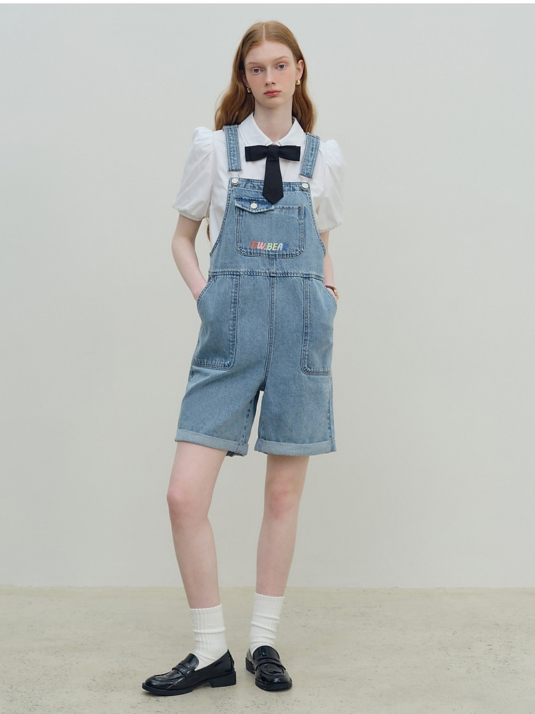 【牛仔背带裤女】夏季刺绣韩版百搭简约连体裤 124929
