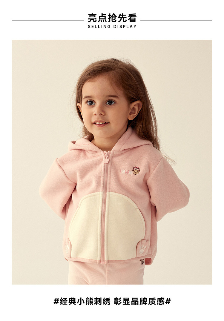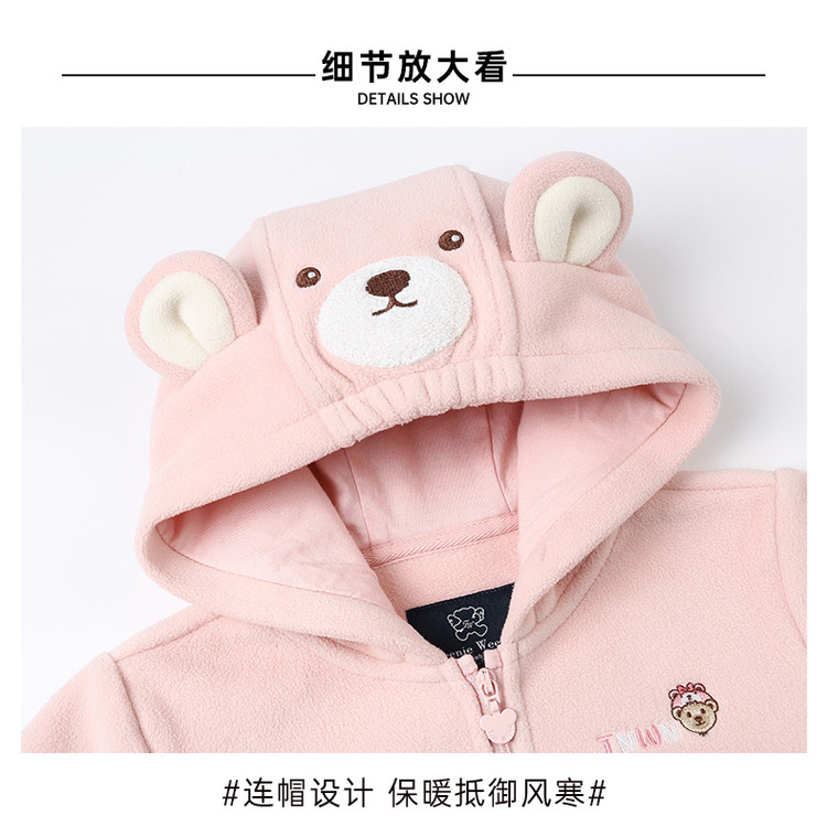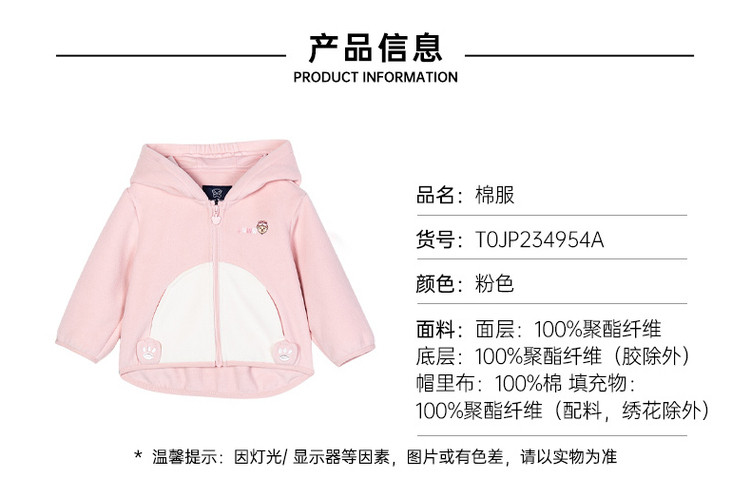 商品名称:小熊童装春款女宝宝保暖连帽拉链款棉服 151809