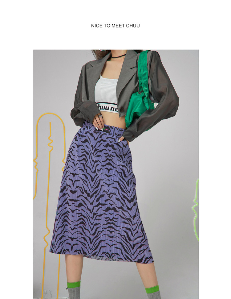 商品名称:松紧腰虎纹半身裙女夏季设计感小众a字中长裙子潮 748243