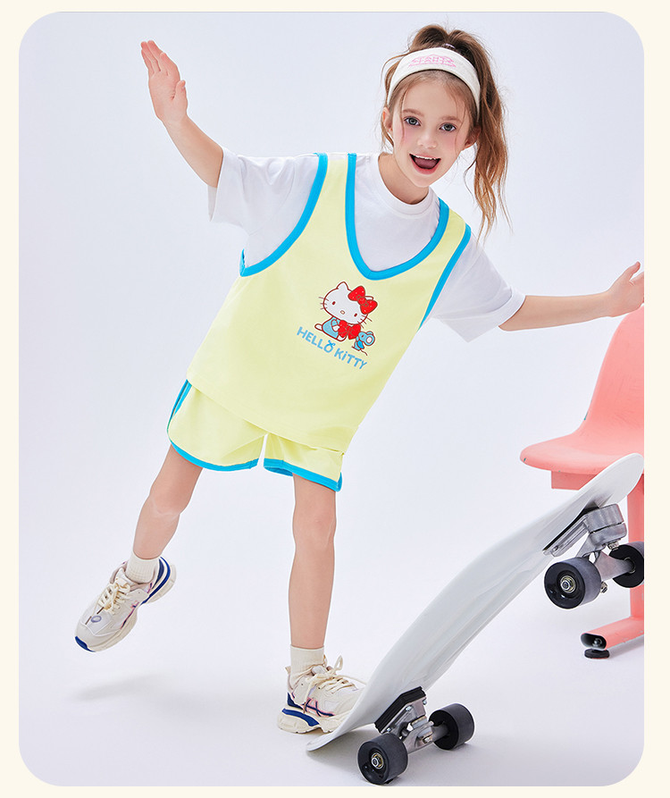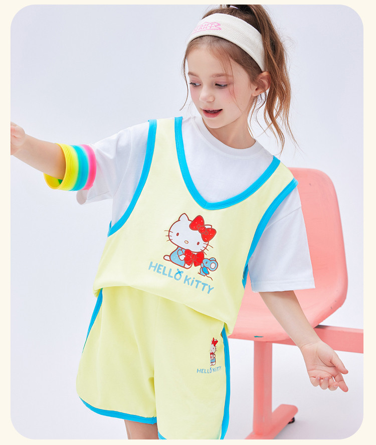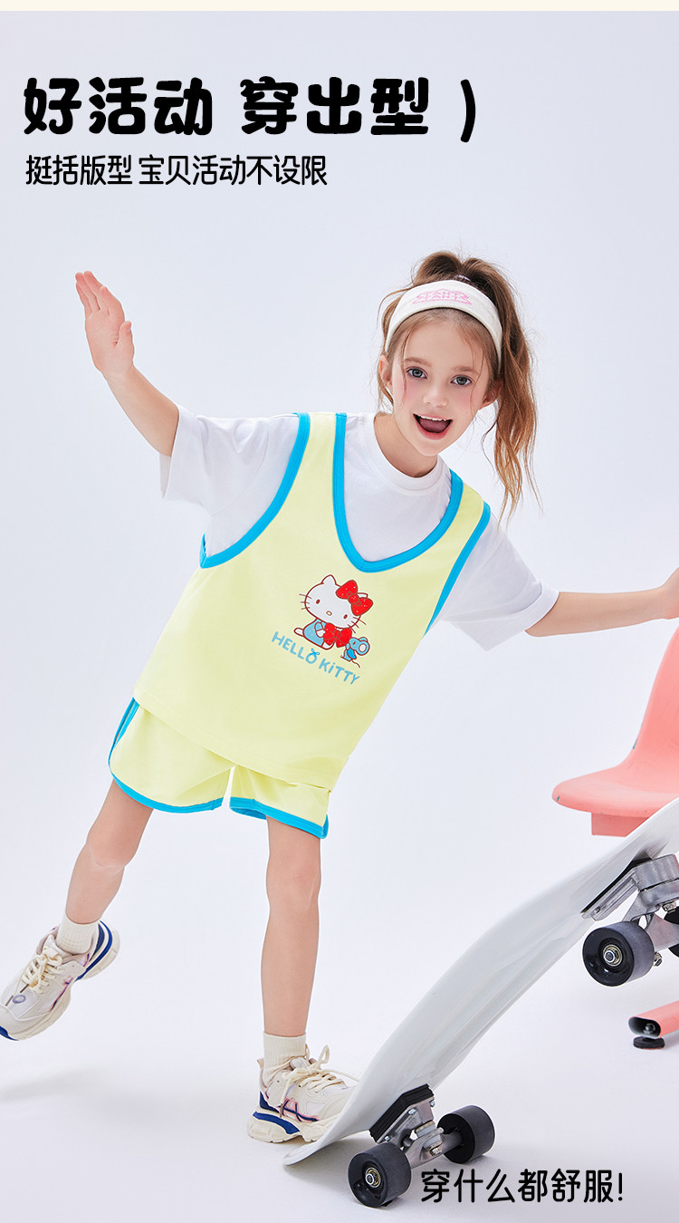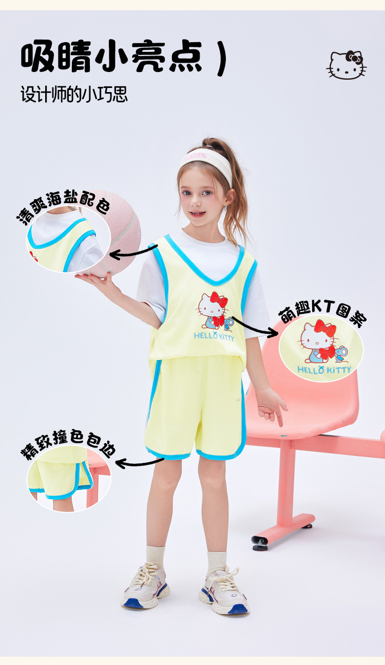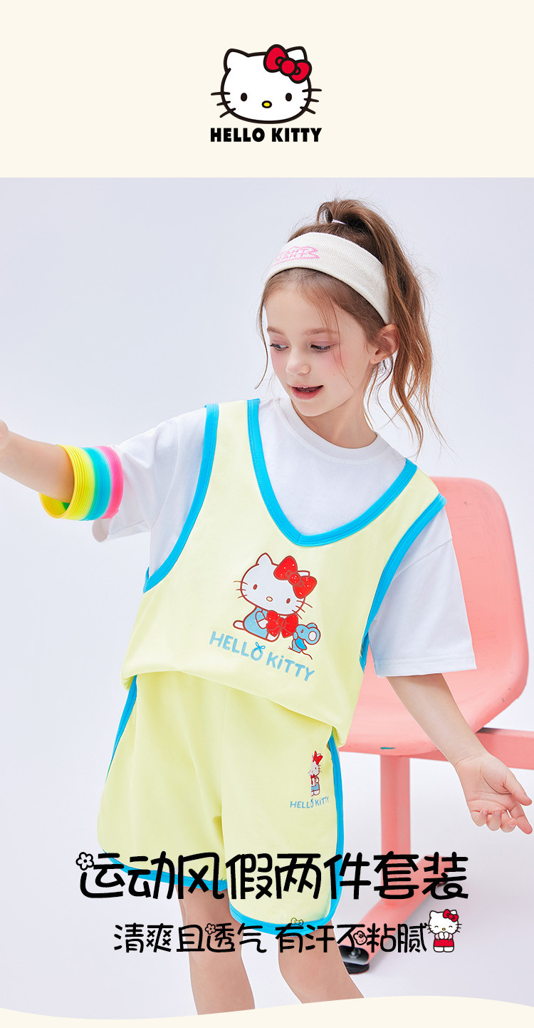 商品名称:【运动风套装】2025款女童夏季跑步透气女宝凯蒂猫两件套 607326