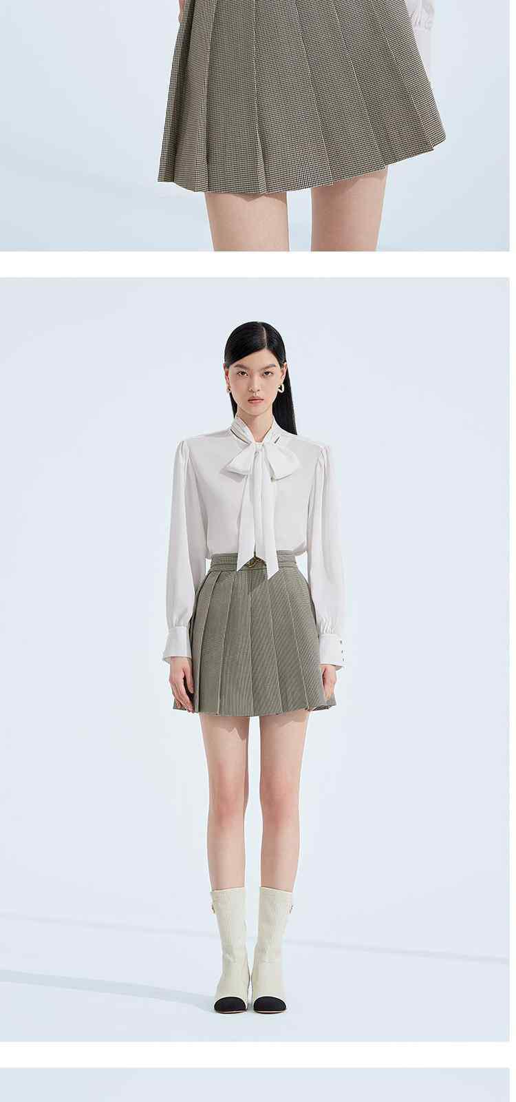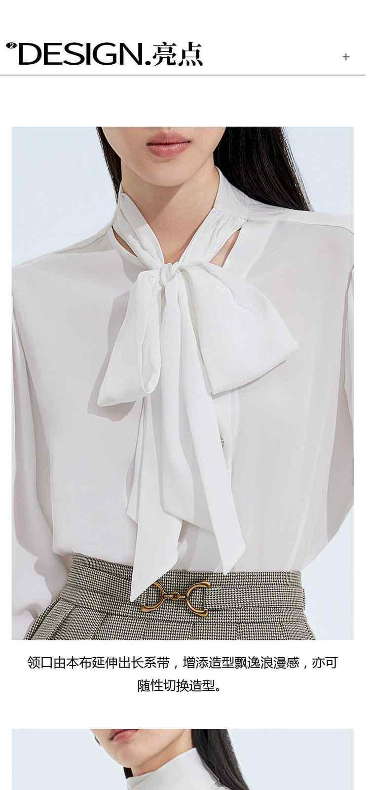商品名称:黑标系列 春装飘带中长宽松通勤长袖衬衫女 435023