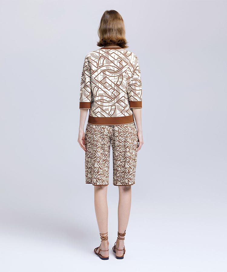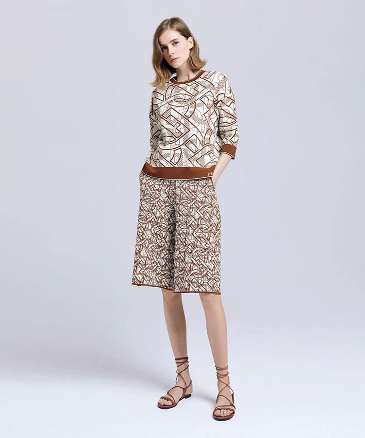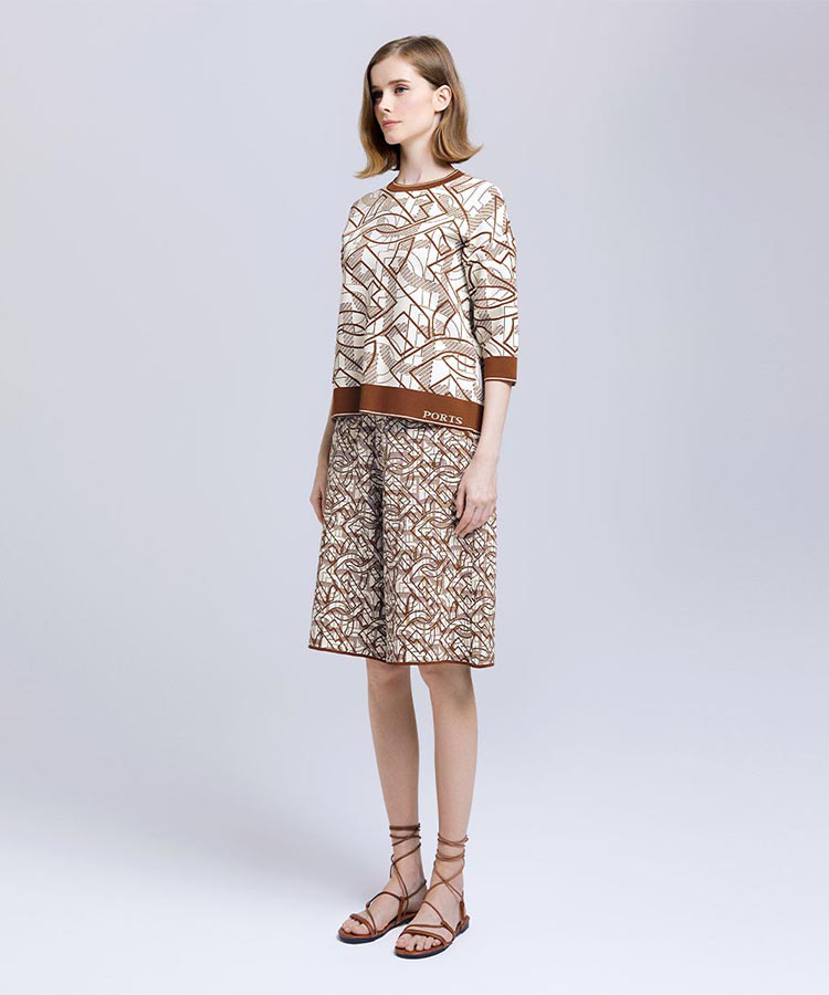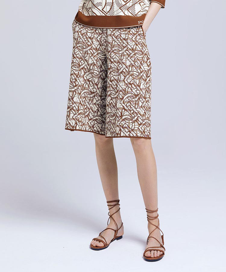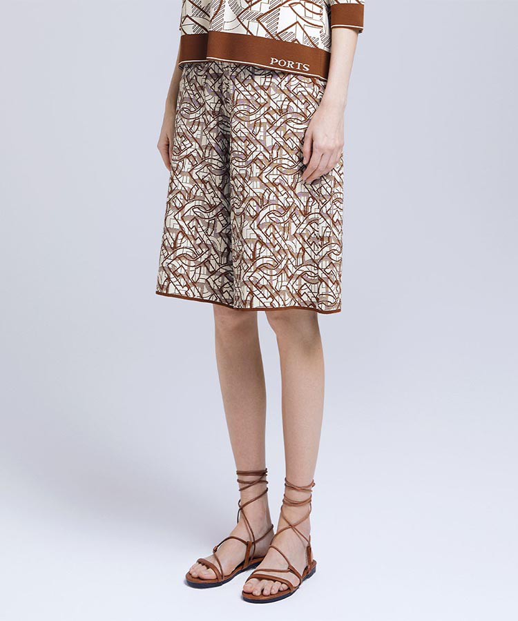 宝姿PORTS女针织撞色Logo提花针织撞色线条短裤 026058