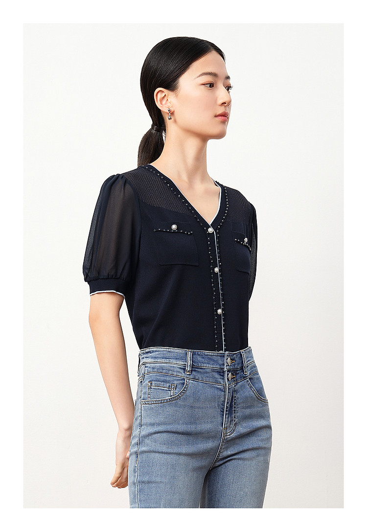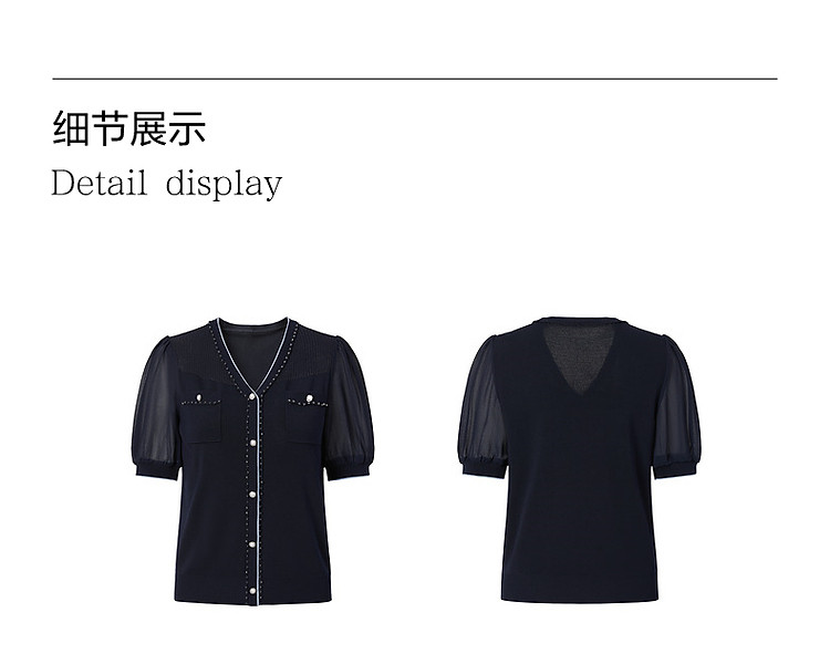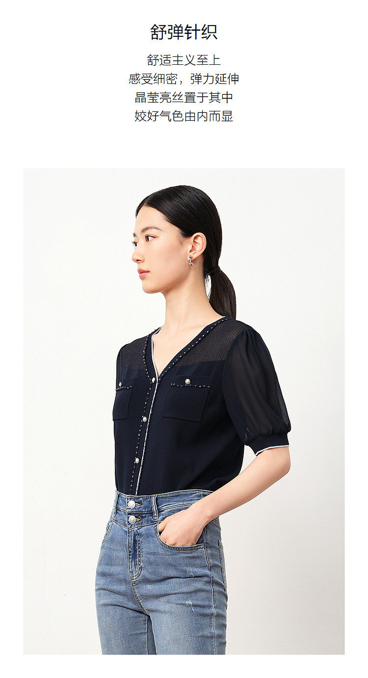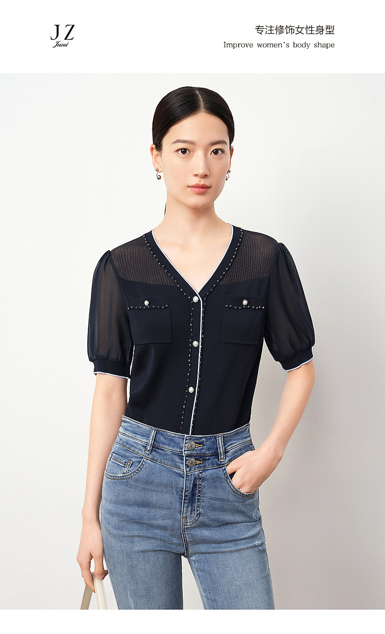 商品名称:商场同款JZ玖姿轻熟V领雪纺拼接套头针织衫夏季JWDX31218 499468