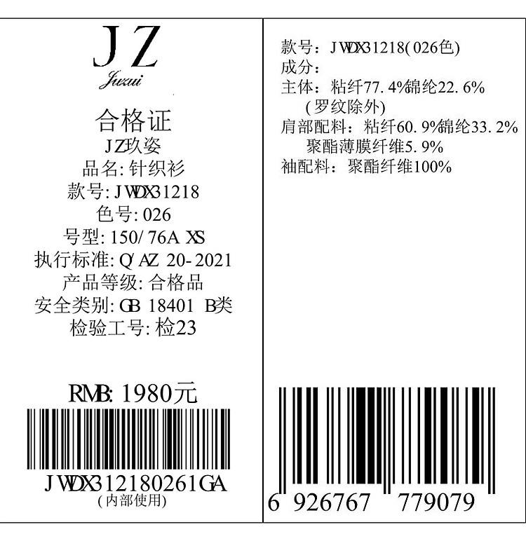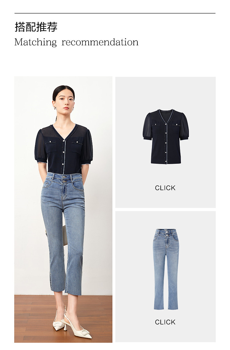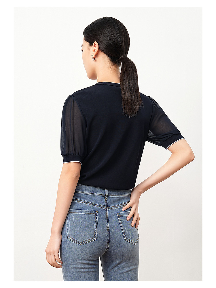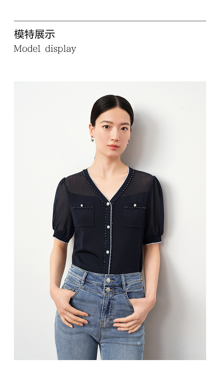 商品名称:商场同款JZ玖姿轻熟V领雪纺拼接套头针织衫夏季JWDX31218 499468