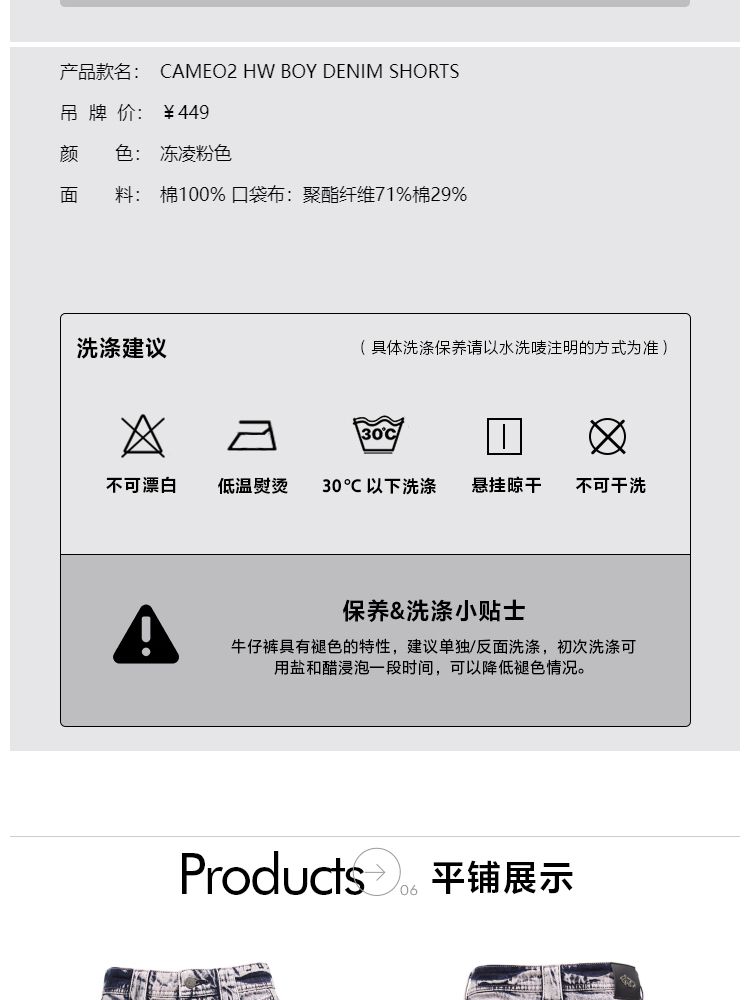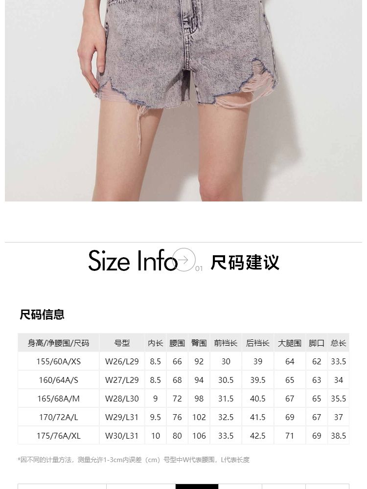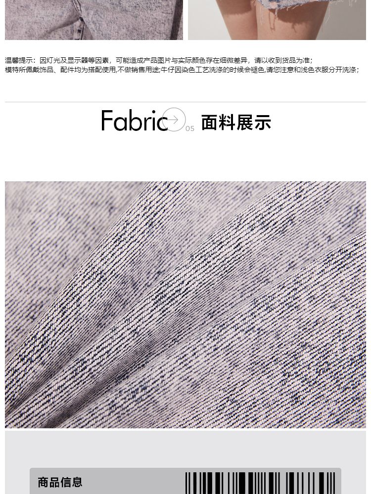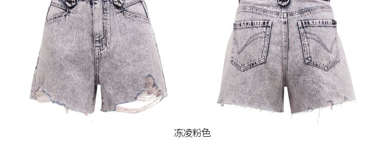 商品名称:【复古做旧】夏季水洗毛边高腰短裤牛仔裤女 440474