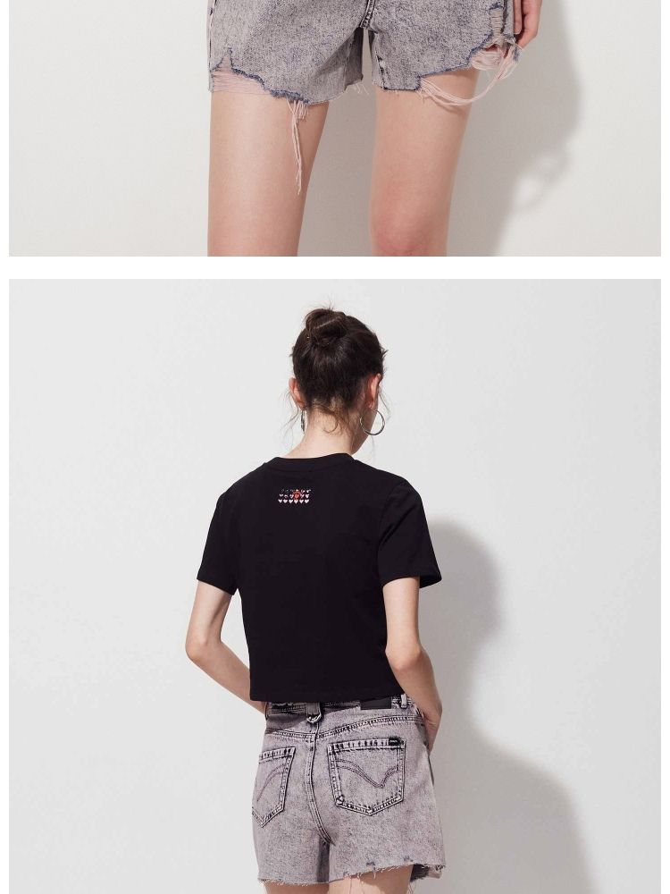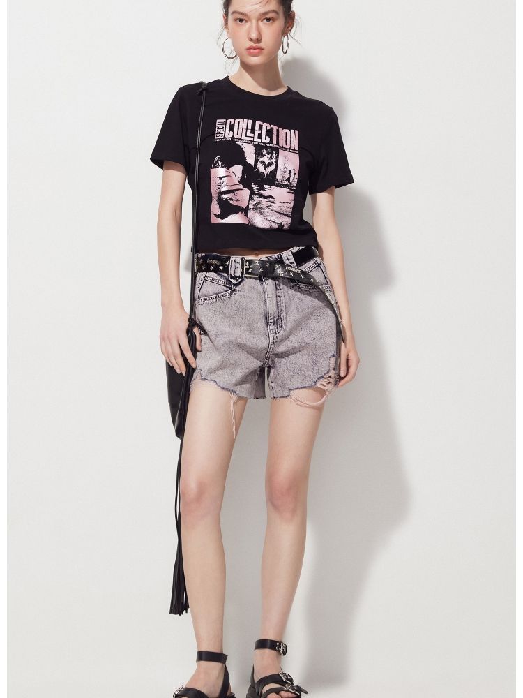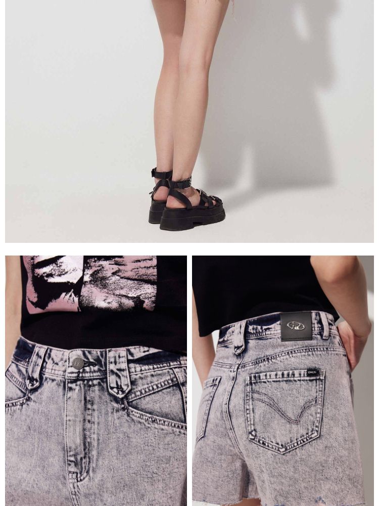 【复古做旧】夏季水洗毛边高腰短裤牛仔裤女 440474
