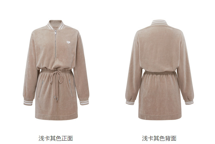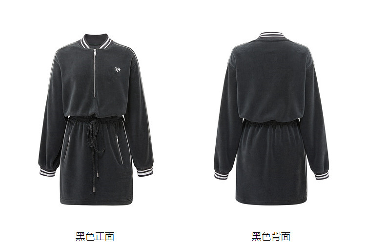商品名称:地素丝绒连衣裙秋冬季运动风休闲系带收腰短裙女 504331