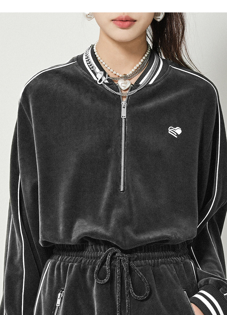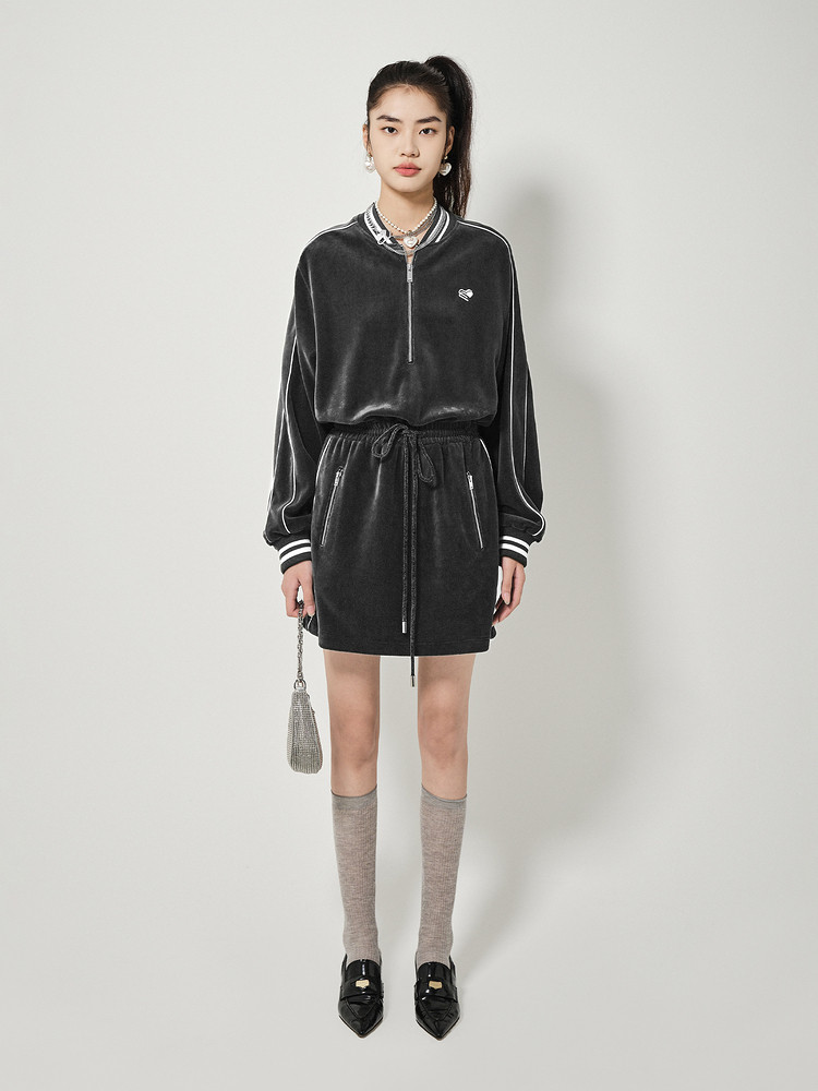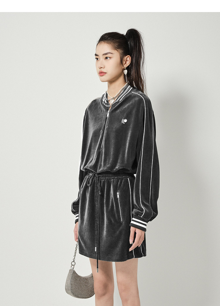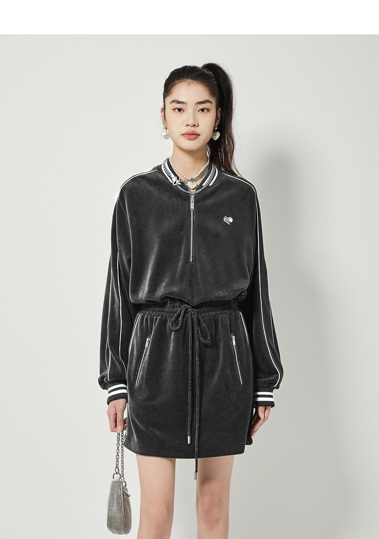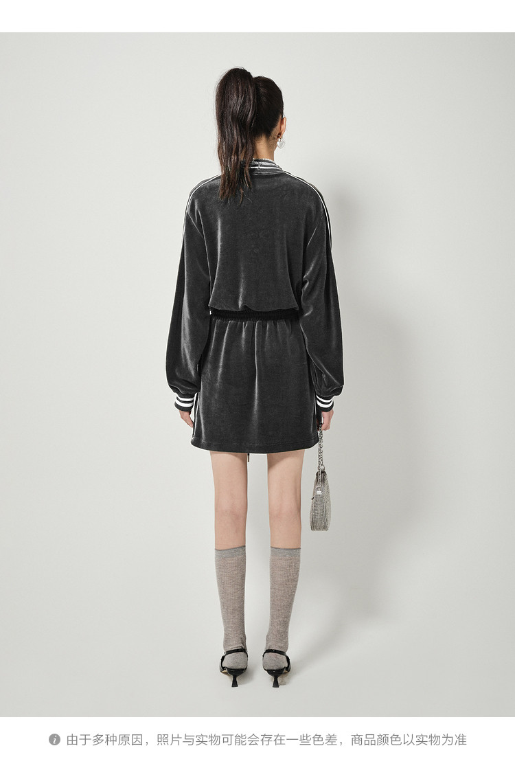 地素丝绒连衣裙秋冬季运动风休闲系带收腰短裙女 504331