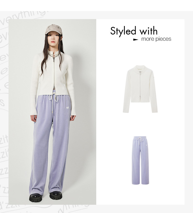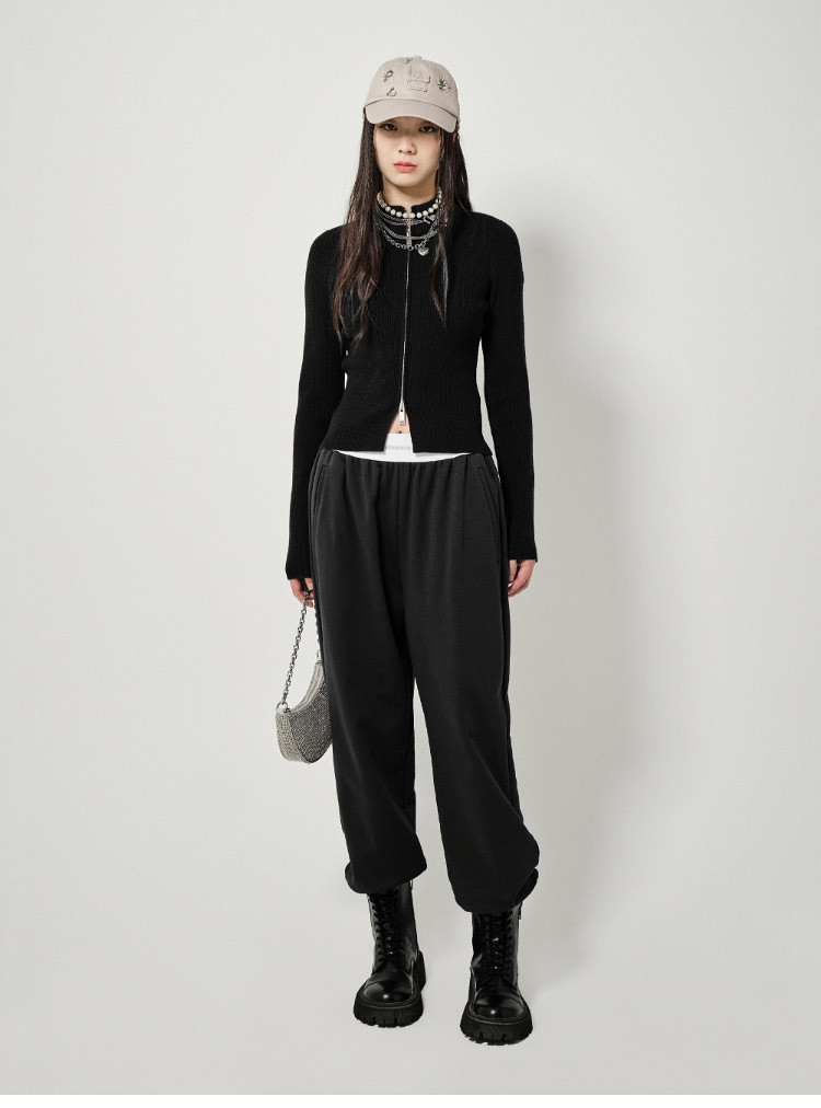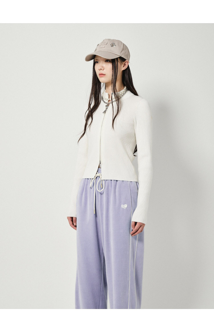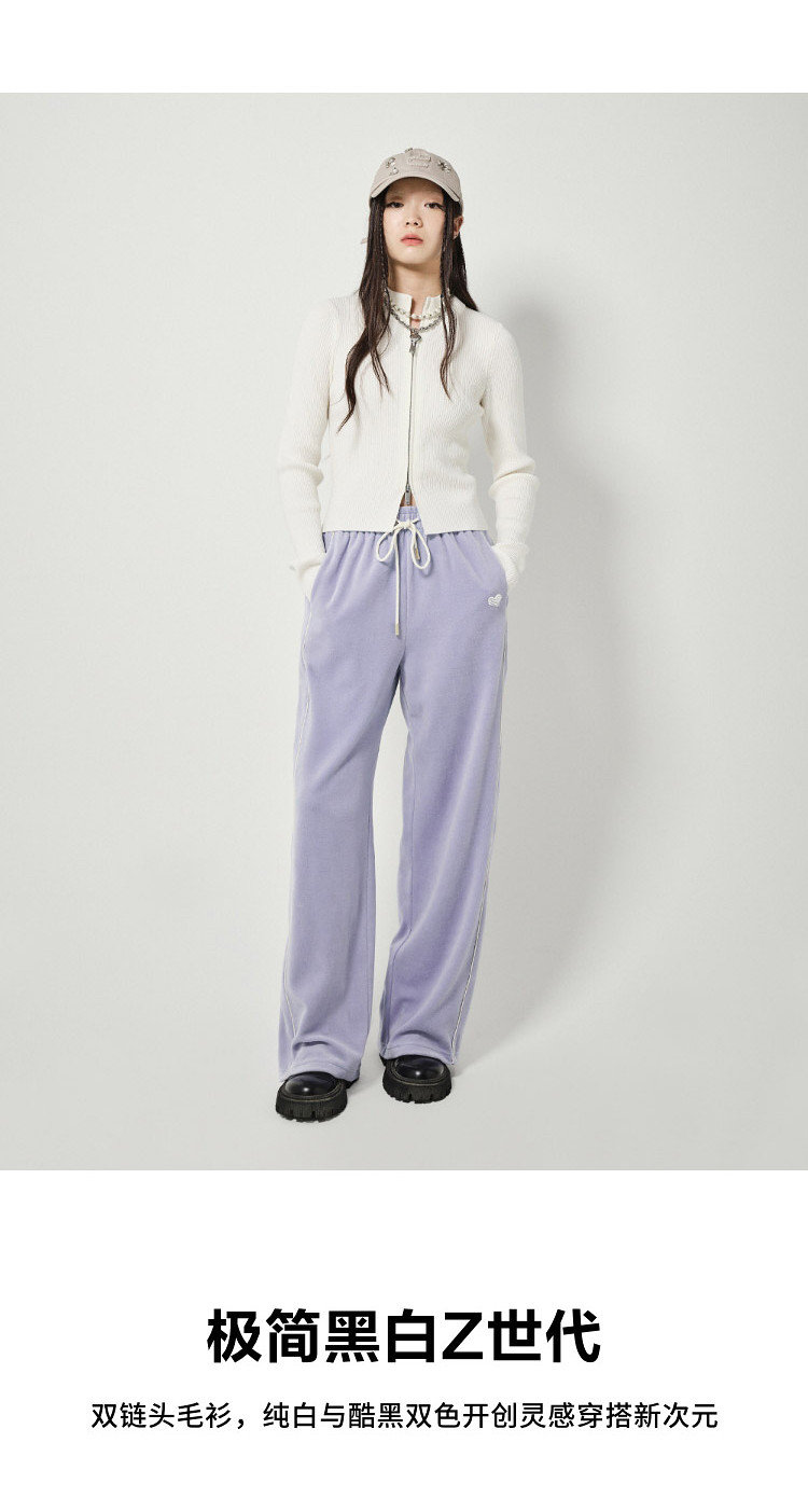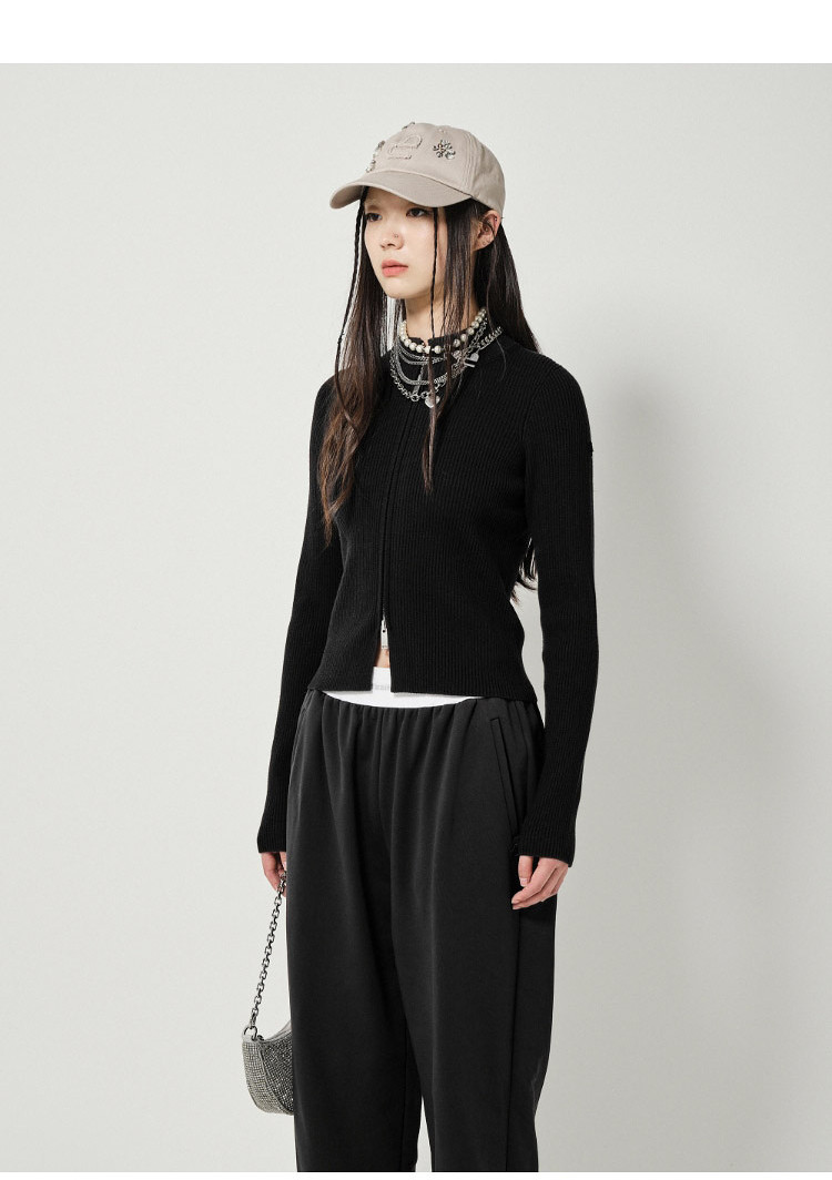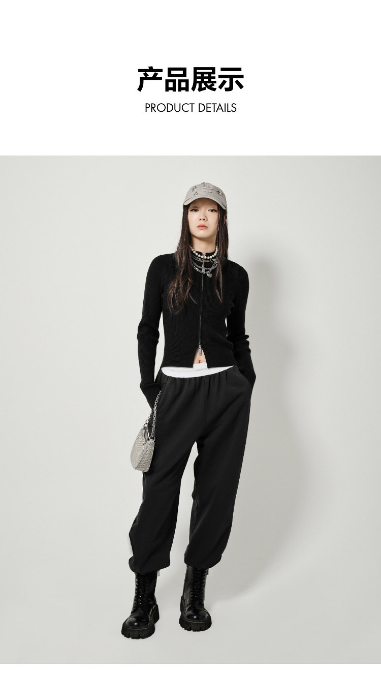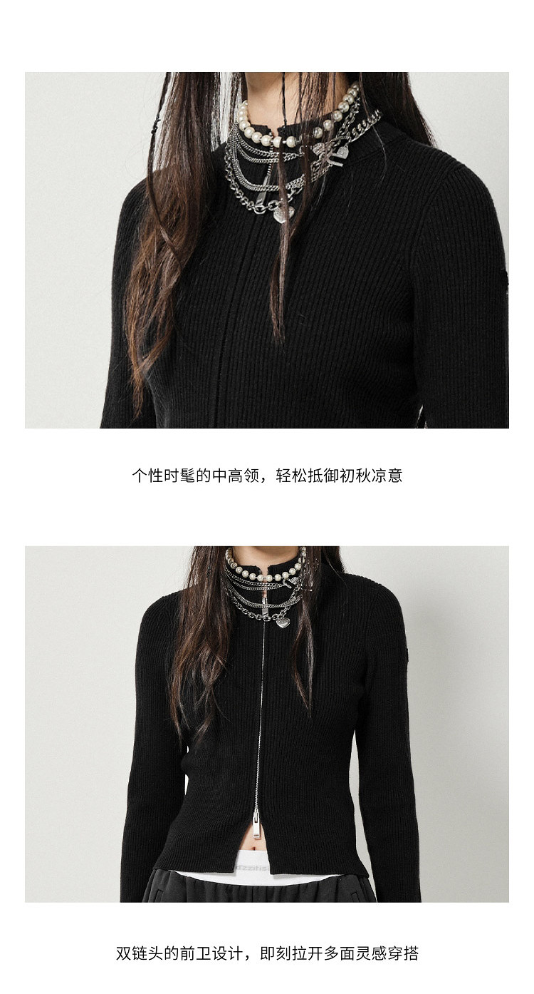 地素拉链毛衣开衫秋冬季辣妹风纯色修身上衣女 916427