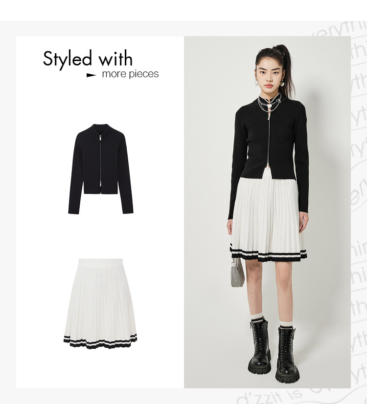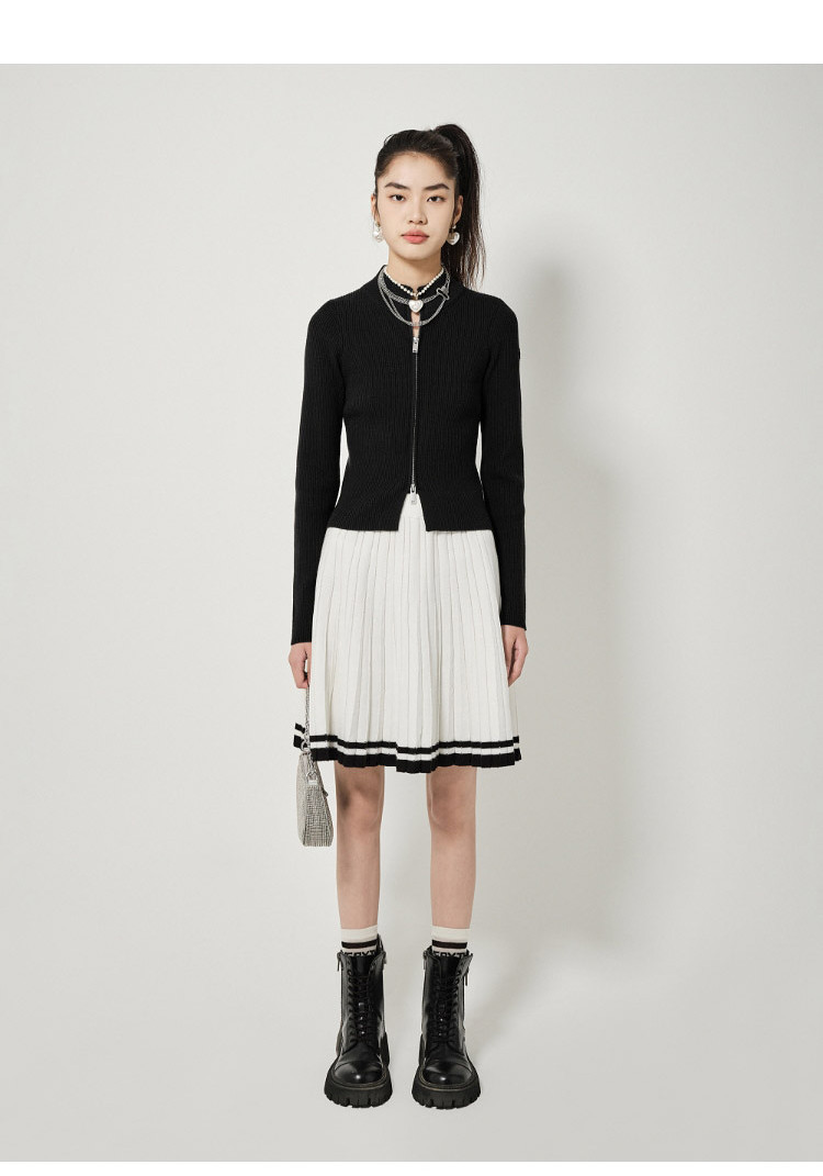 商品名称:地素拉链毛衣开衫秋冬季辣妹风纯色修身上衣女 916427