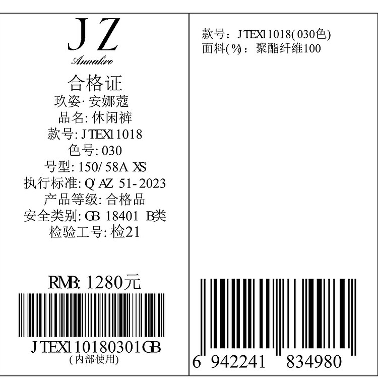 商品名称:玖姿旗下安娜蔻系列通勤商务肌理感阔腿休闲裤女装夏季 863756