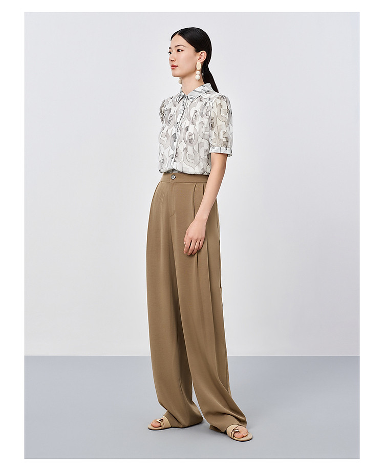 玖姿旗下安娜蔻系列通勤商务肌理感阔腿休闲裤女装夏季 863756
