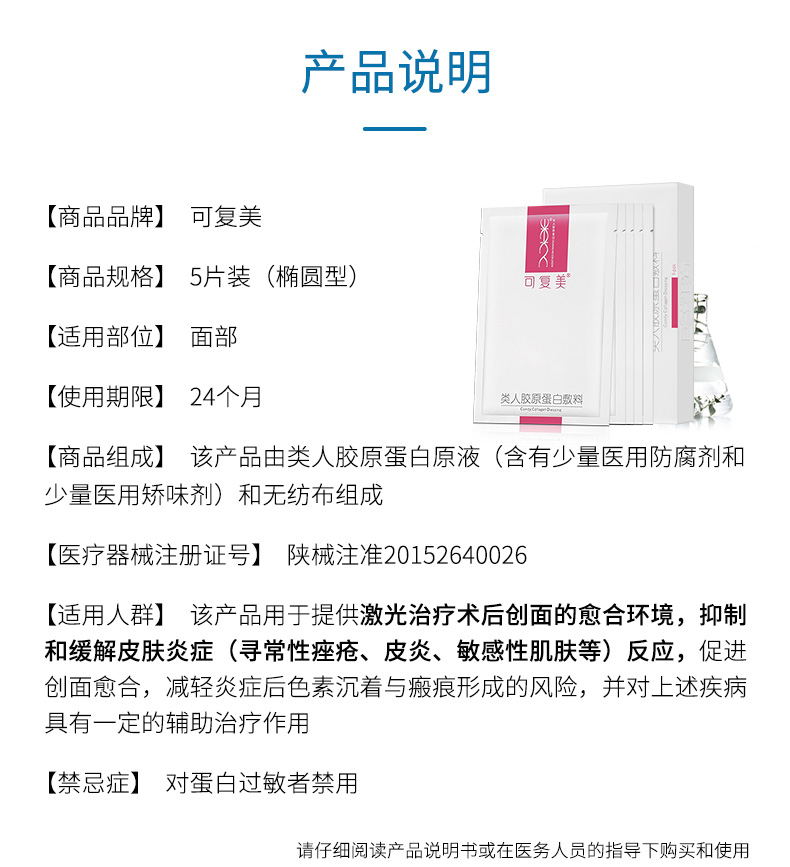 商品名称:可复美 类人胶原蛋白冷敷贴 粉色 5片 医用敷料 医美术后修护