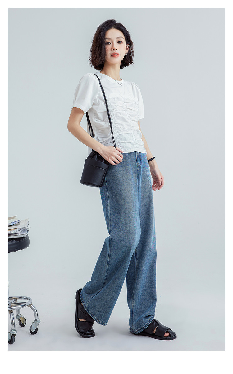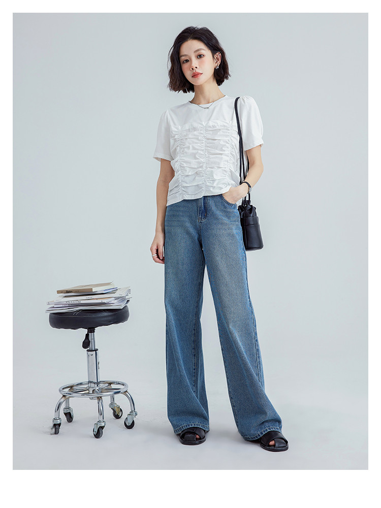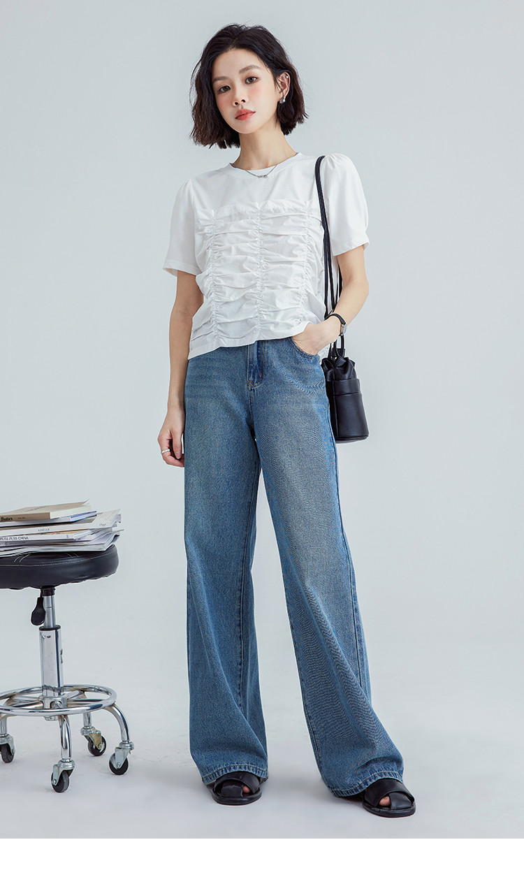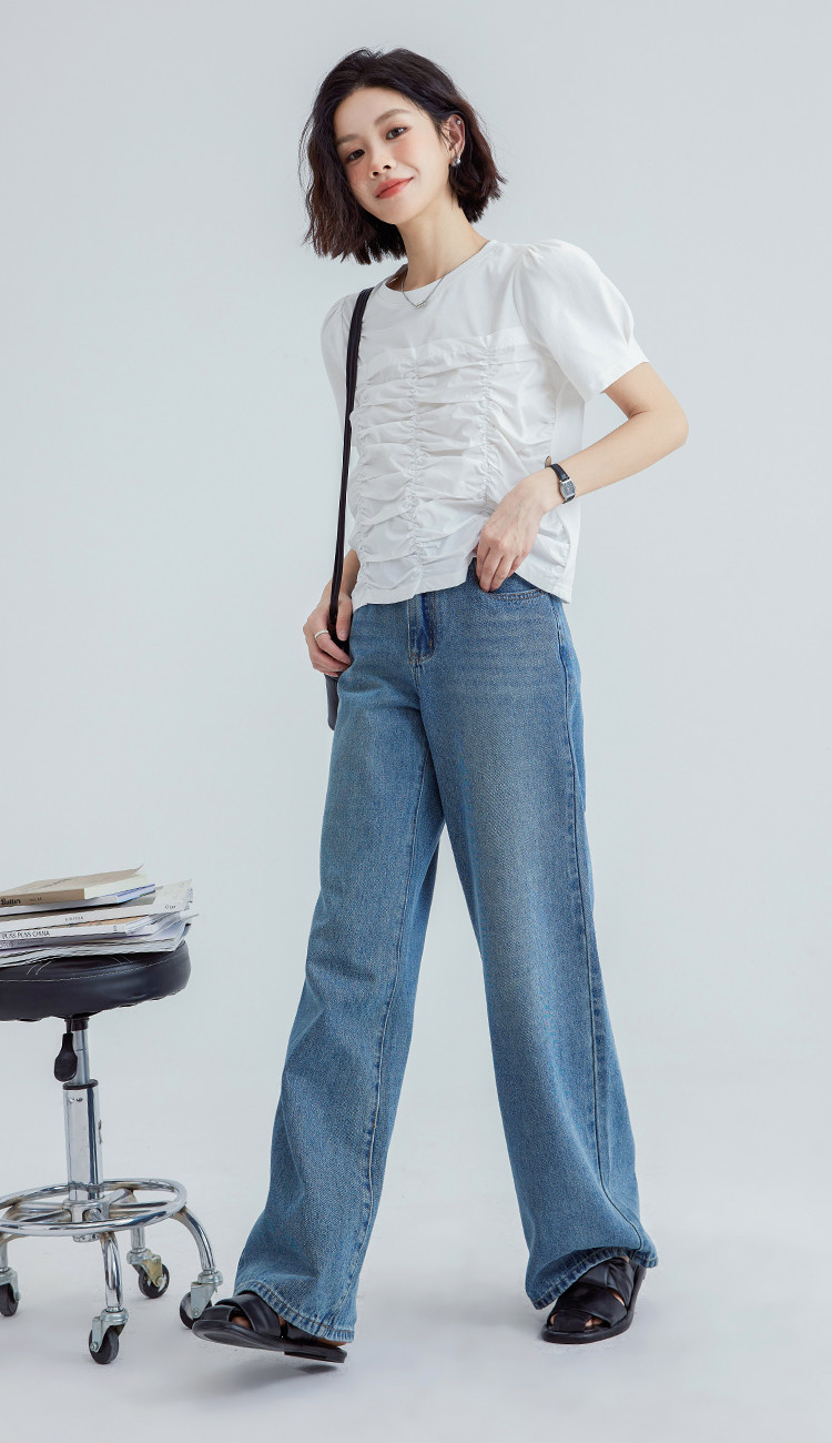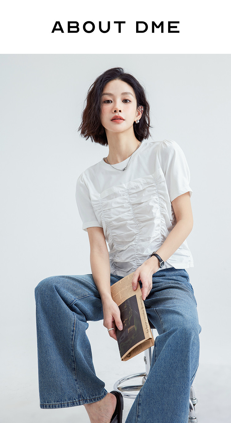 【清爽感白T】夏款时髦不撞款造型感捏褶轻薄透气短袖女 669762
