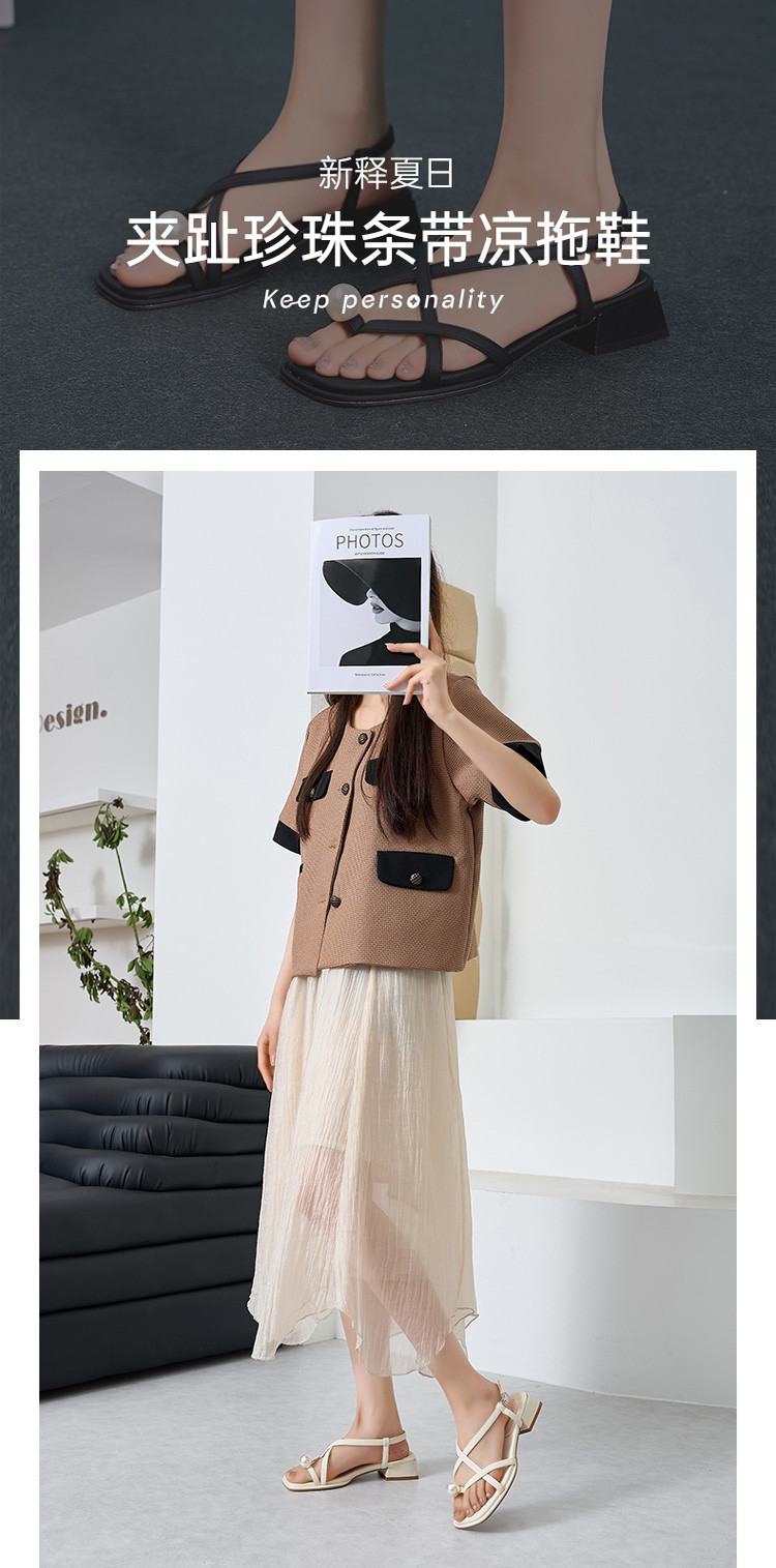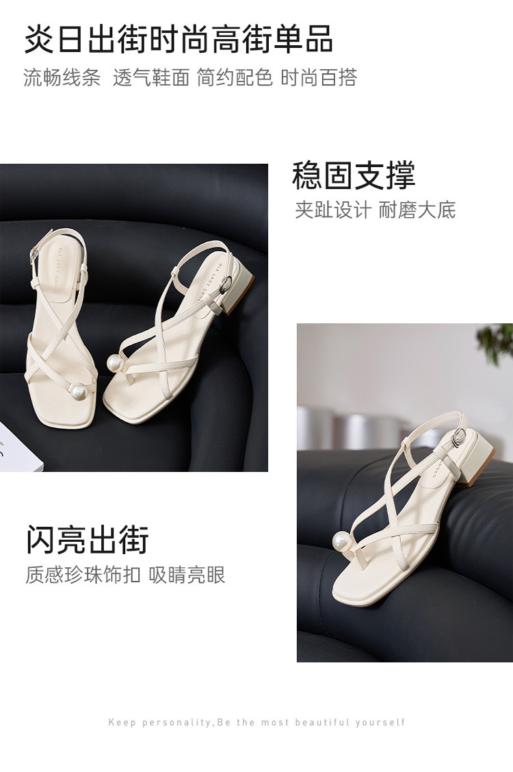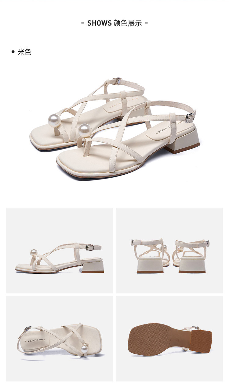 商品名称:凉鞋夏女罗马凉鞋女夏配裙子气质小方根凉鞋 454607