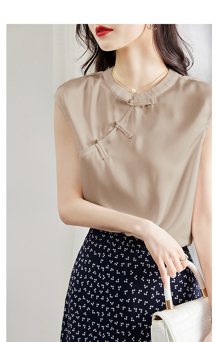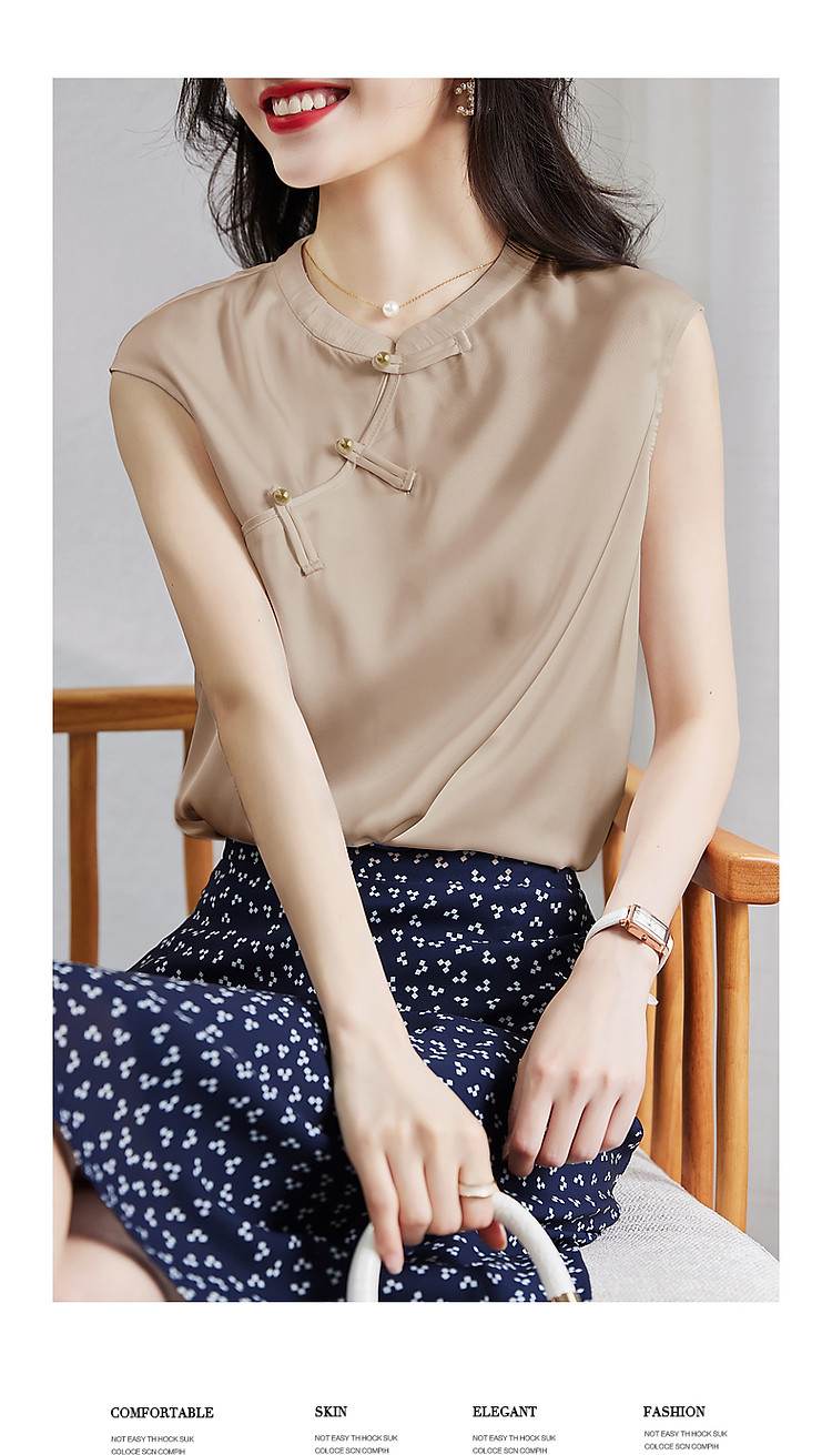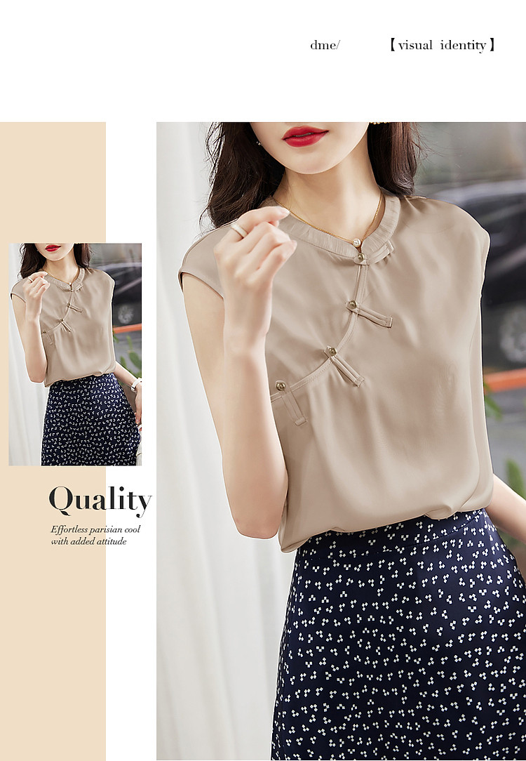 商品名称:【椿山晓月】夏国风新中式温婉衬衫复古红珠装饰盘扣衬衣女装上衣 096385
