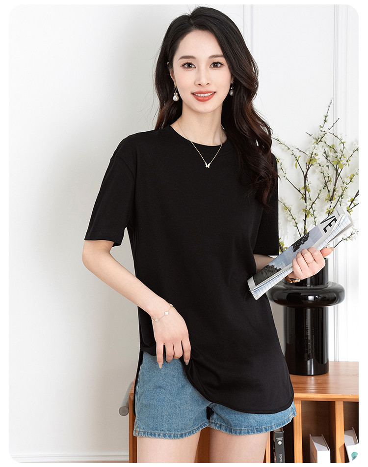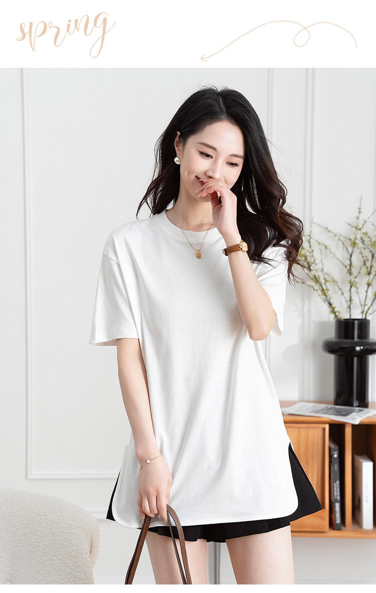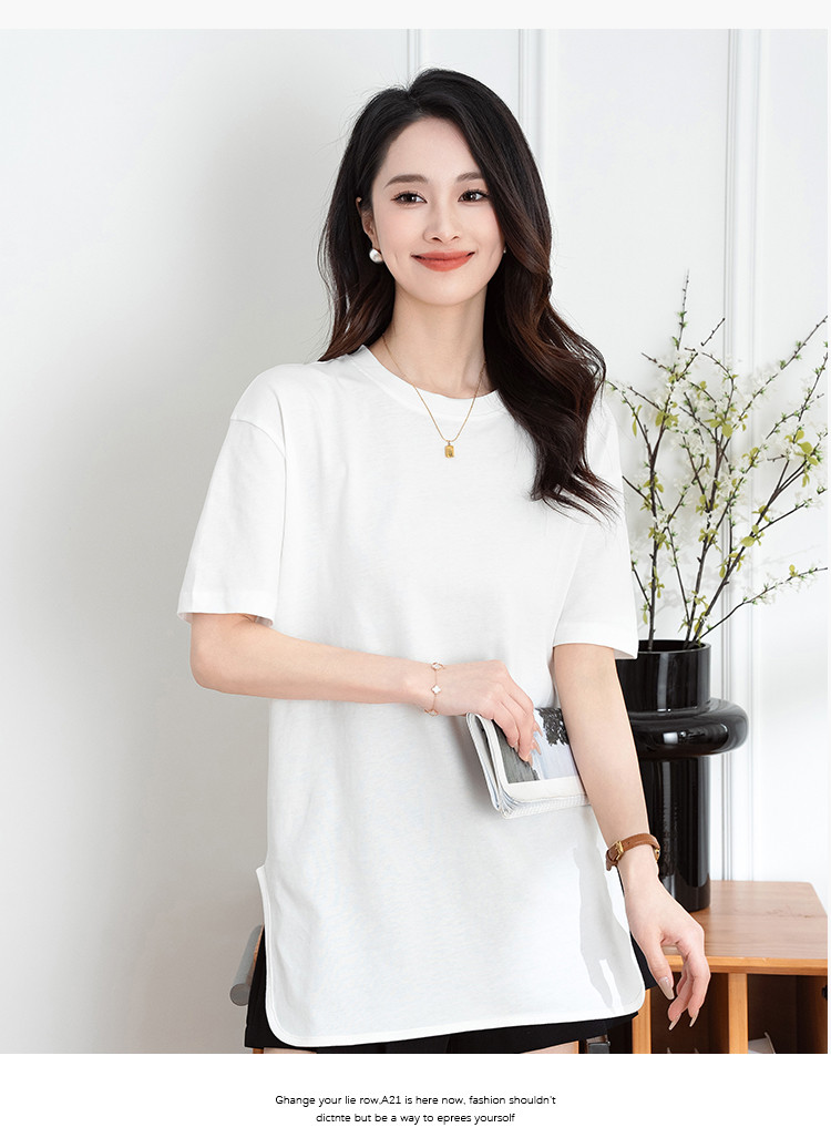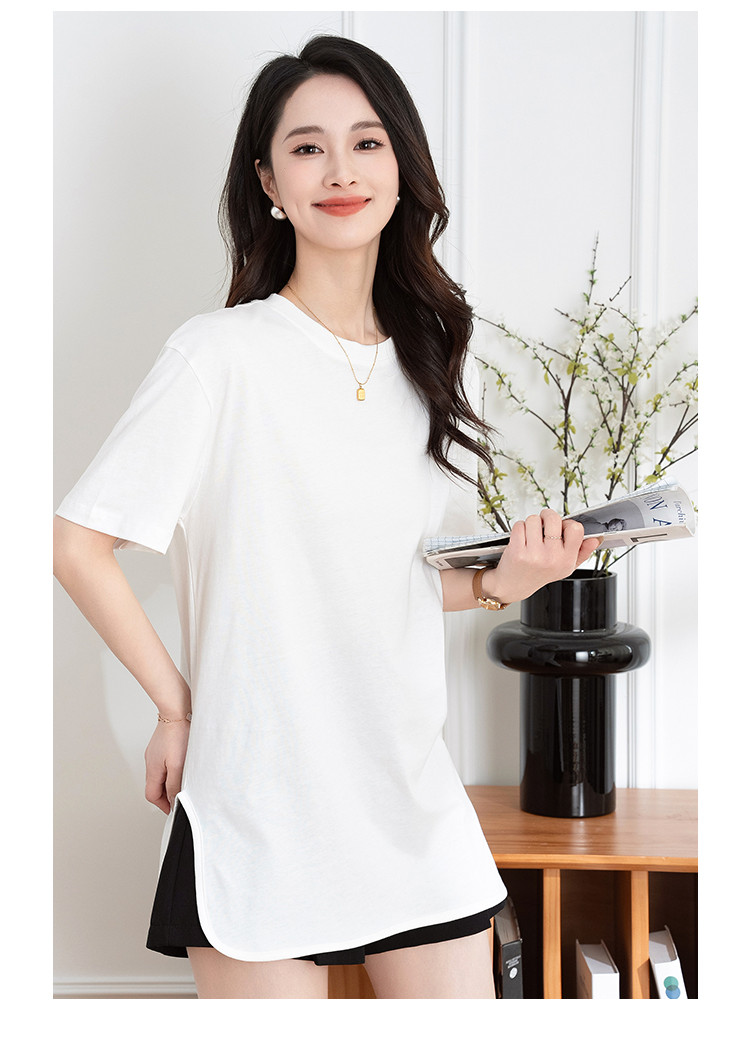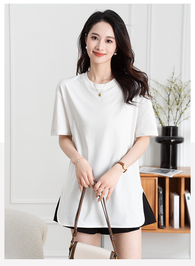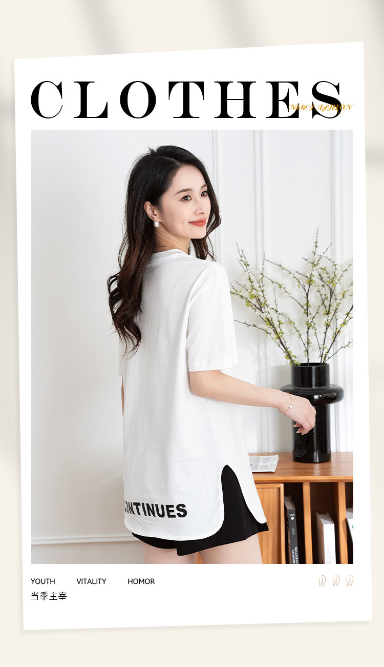 商品名称:【纯棉透气】夏季潮流不规则开叉印花休闲时尚圆领短袖T恤上衣女 696385