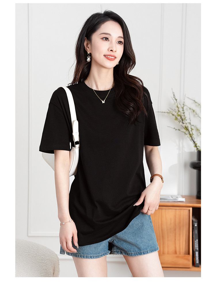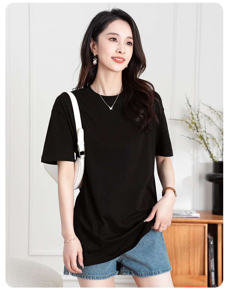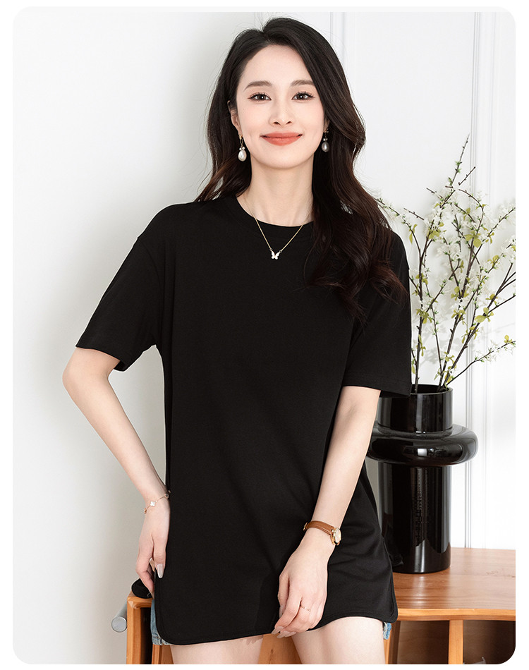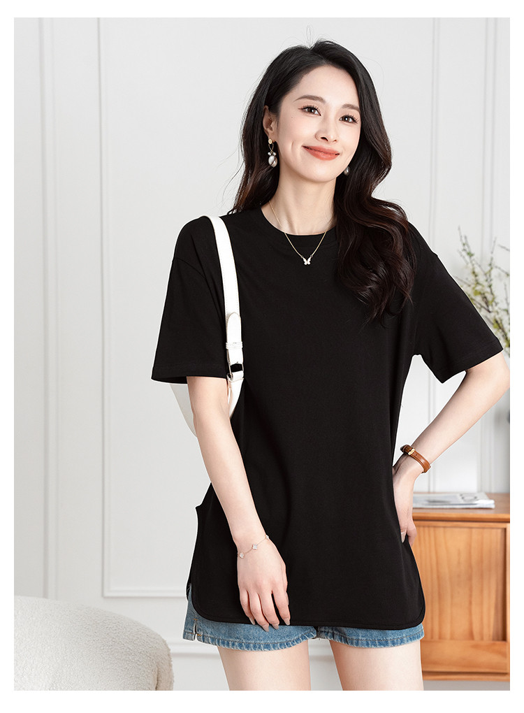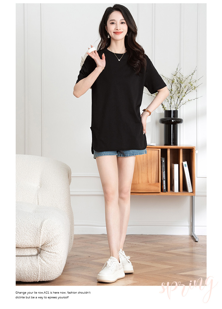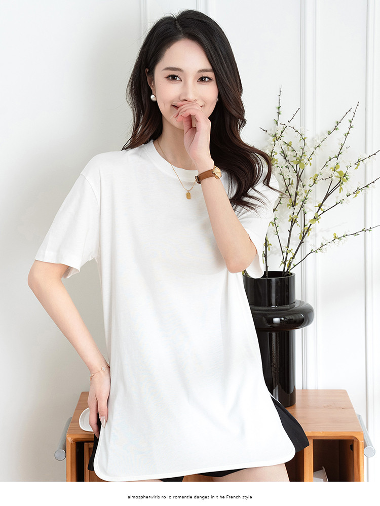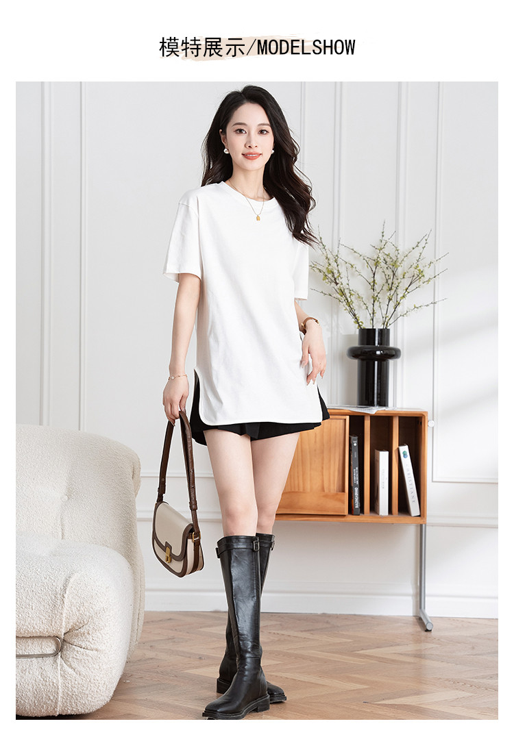 商品名称:【纯棉透气】夏季潮流不规则开叉印花休闲时尚圆领短袖T恤上衣女 696385