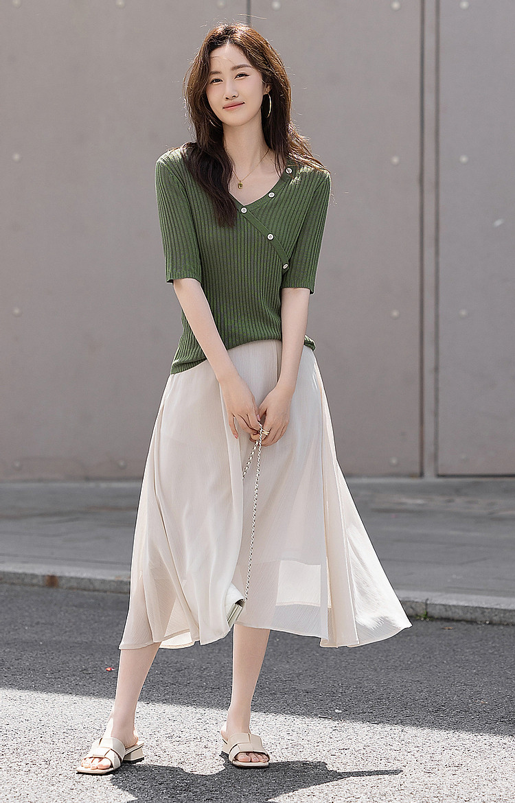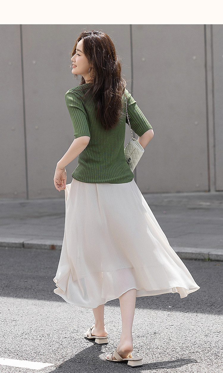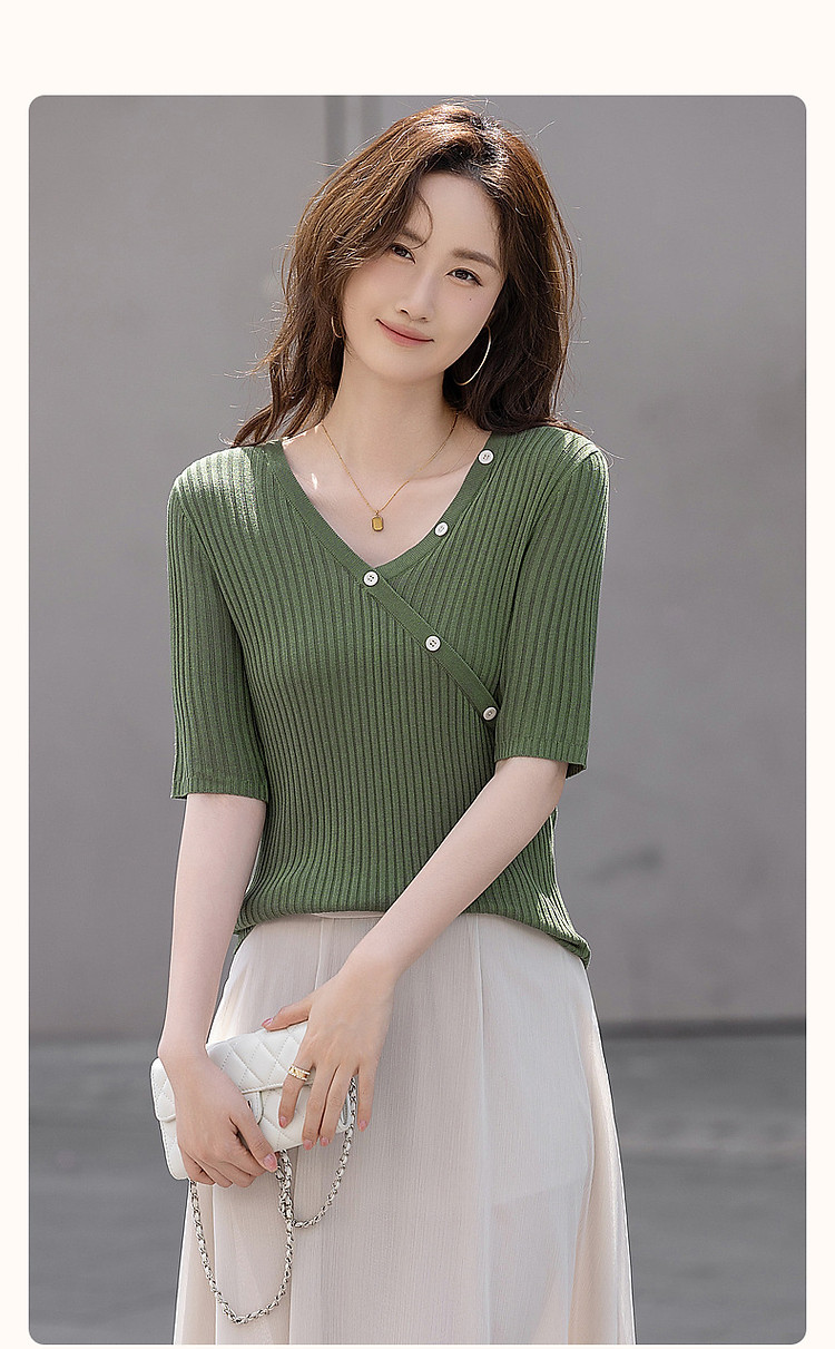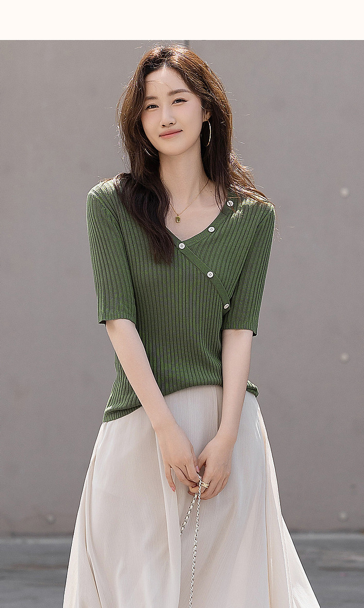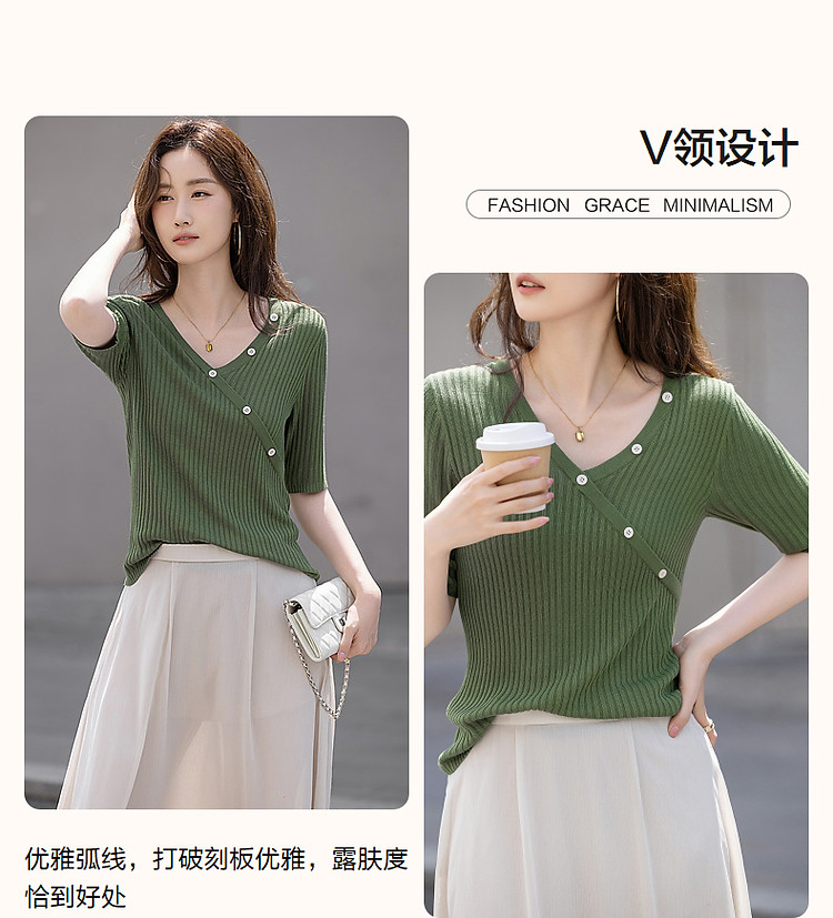 商品名称:【冰淇淋抹茶线衫】夏文艺素雅森系V领五分袖软糯针织衫女上衣 628033