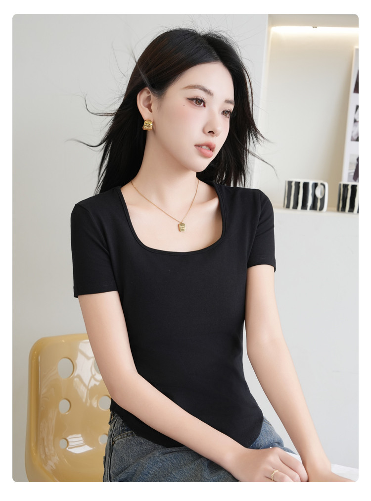 内衣夏季薄款女士绵柔舒适时尚休闲简约百搭西服打底衫T恤短袖女 277835