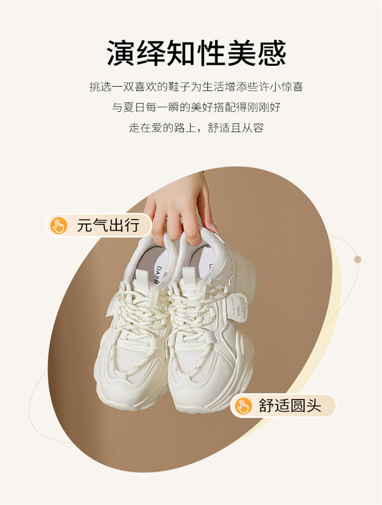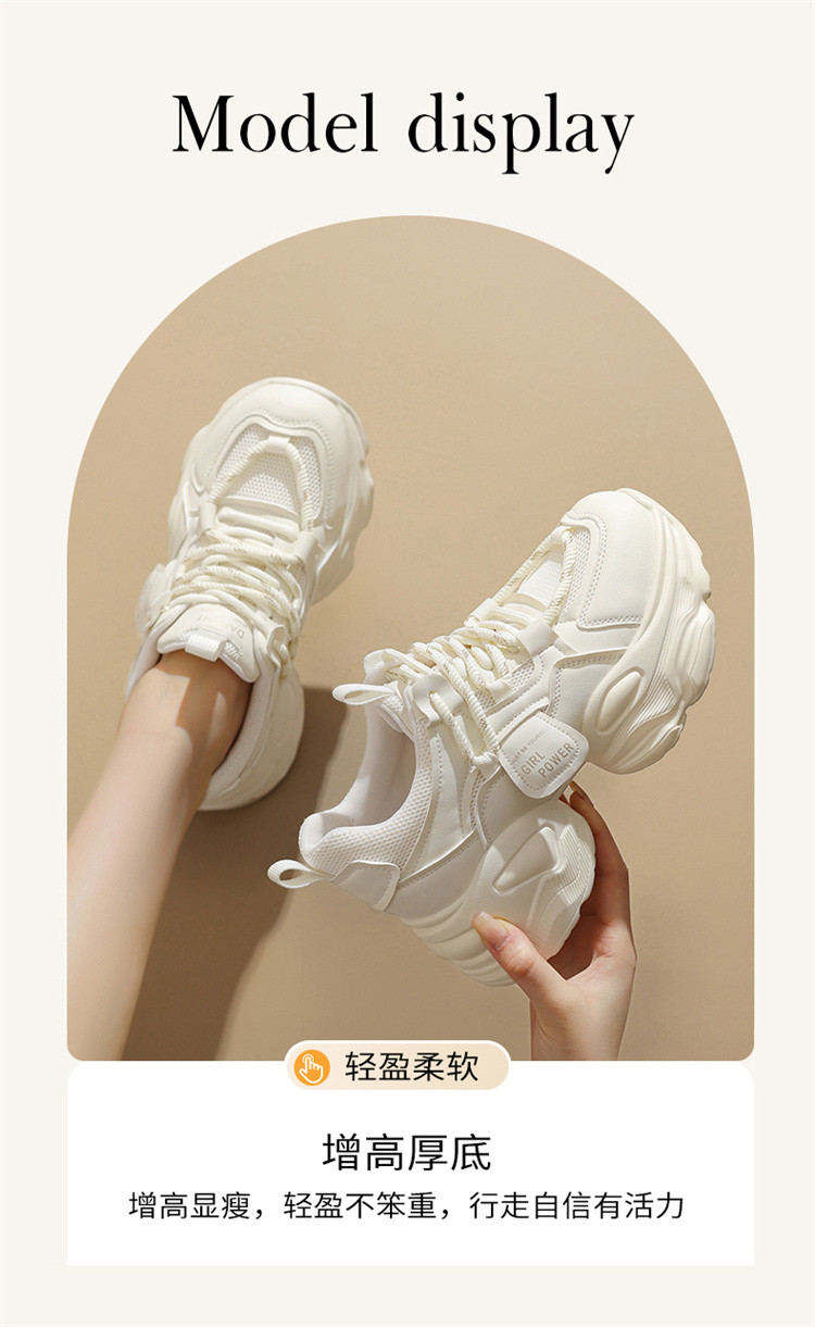 商品名称:老爹鞋女夏季百搭日常小白鞋厚底鞋舒适透气显脚小轻便休闲运动鞋 180567